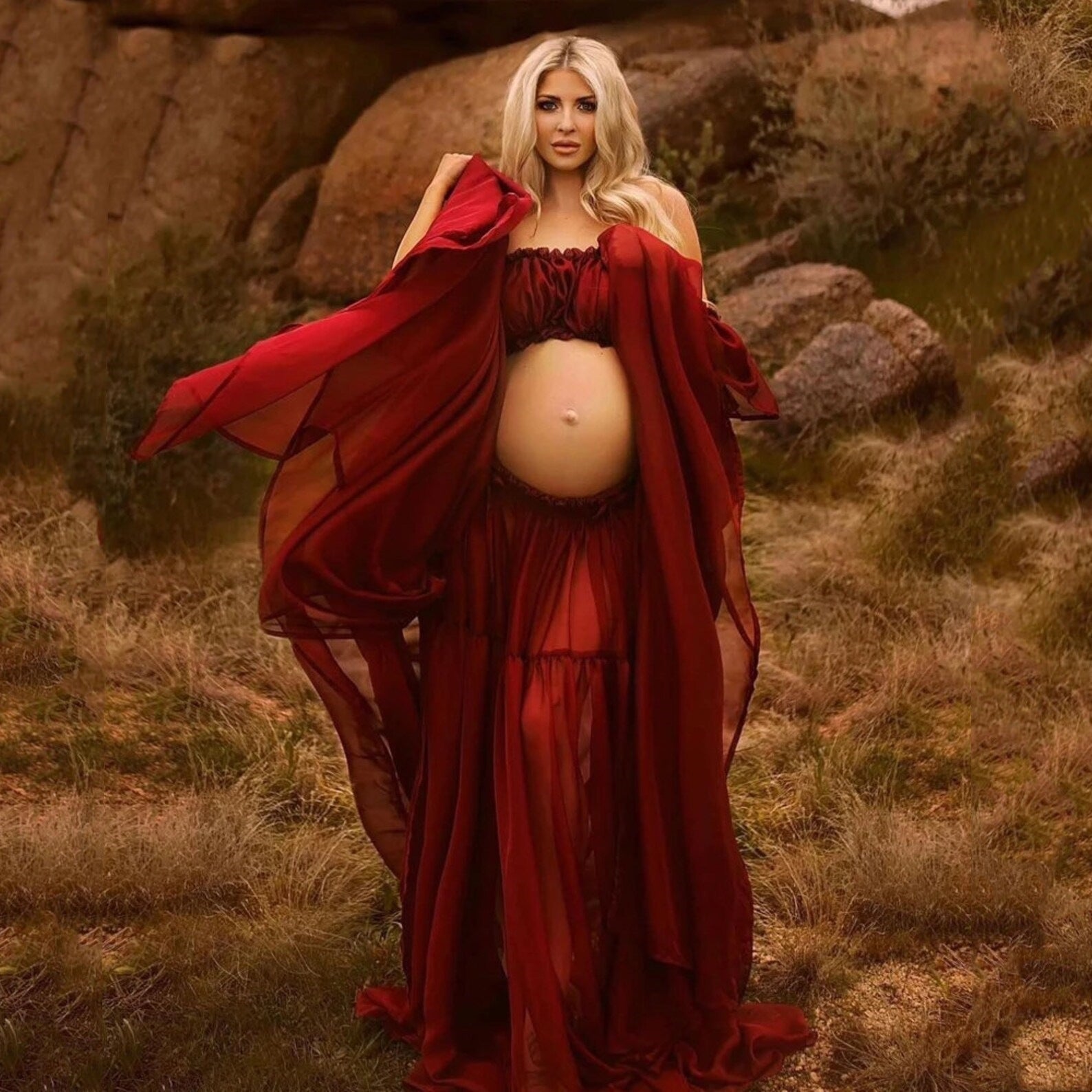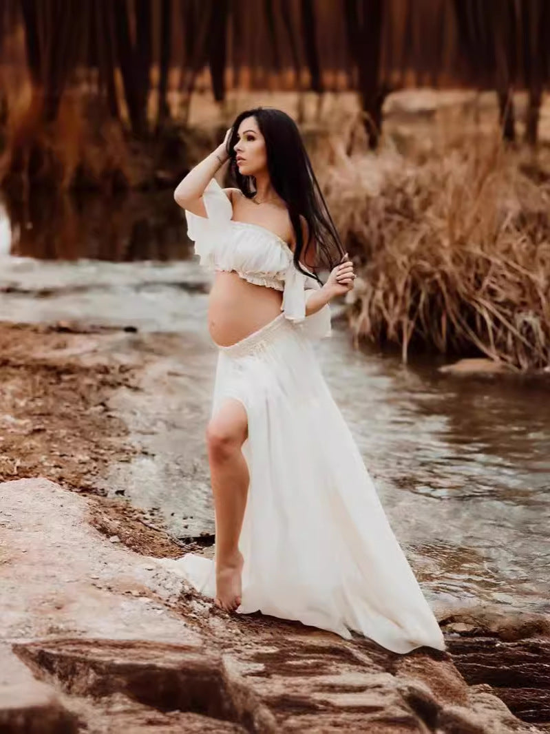 Plataz Chiffon Pregnant Women's Long Dress Set One Word For Summer Chiffon Pregnant Women To Take Pictures Maternity
