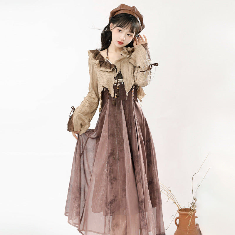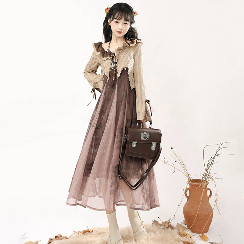 Plataz Design Desert Withered Butterfly Chinese Style Improvement Han Elements Of Women's Top Dress Suit 6917