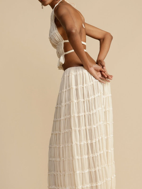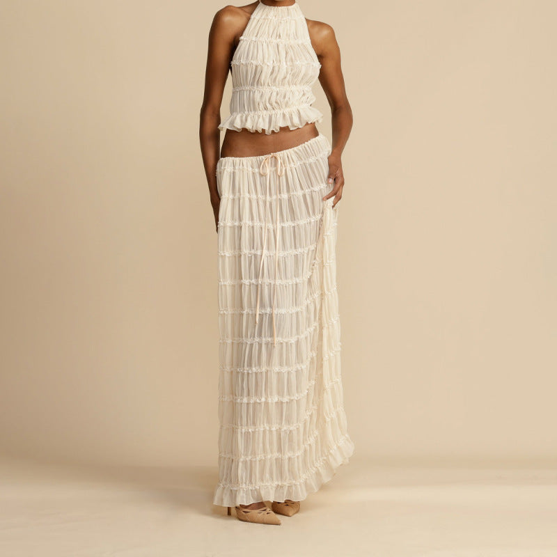 Plataz Design Folding Top Sexy Back Hanging Neck Sling Skirt Two Sets HZ0628