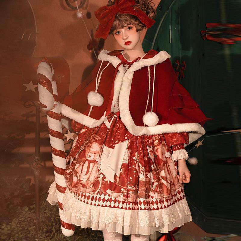 Plataz Design Sweet Bear Gift House Long Sleeve OP Dress Cape Cute Lolita Sweet Dress 6326