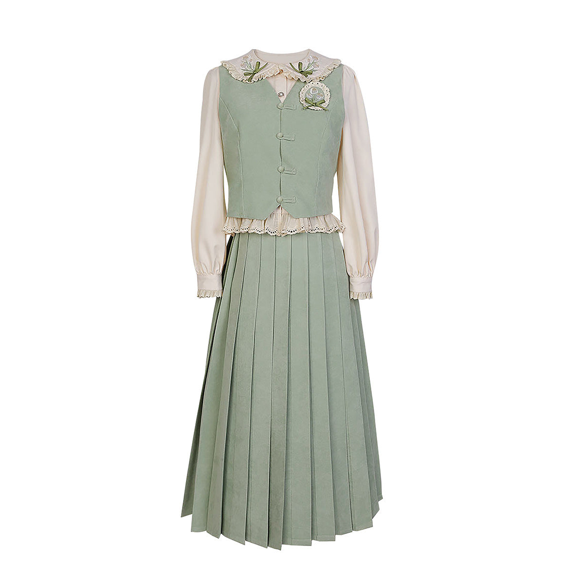 Plataz Design Tulip Chinese Style Improvement Han Elements Women's Shirt Vest Skirt Set 6733