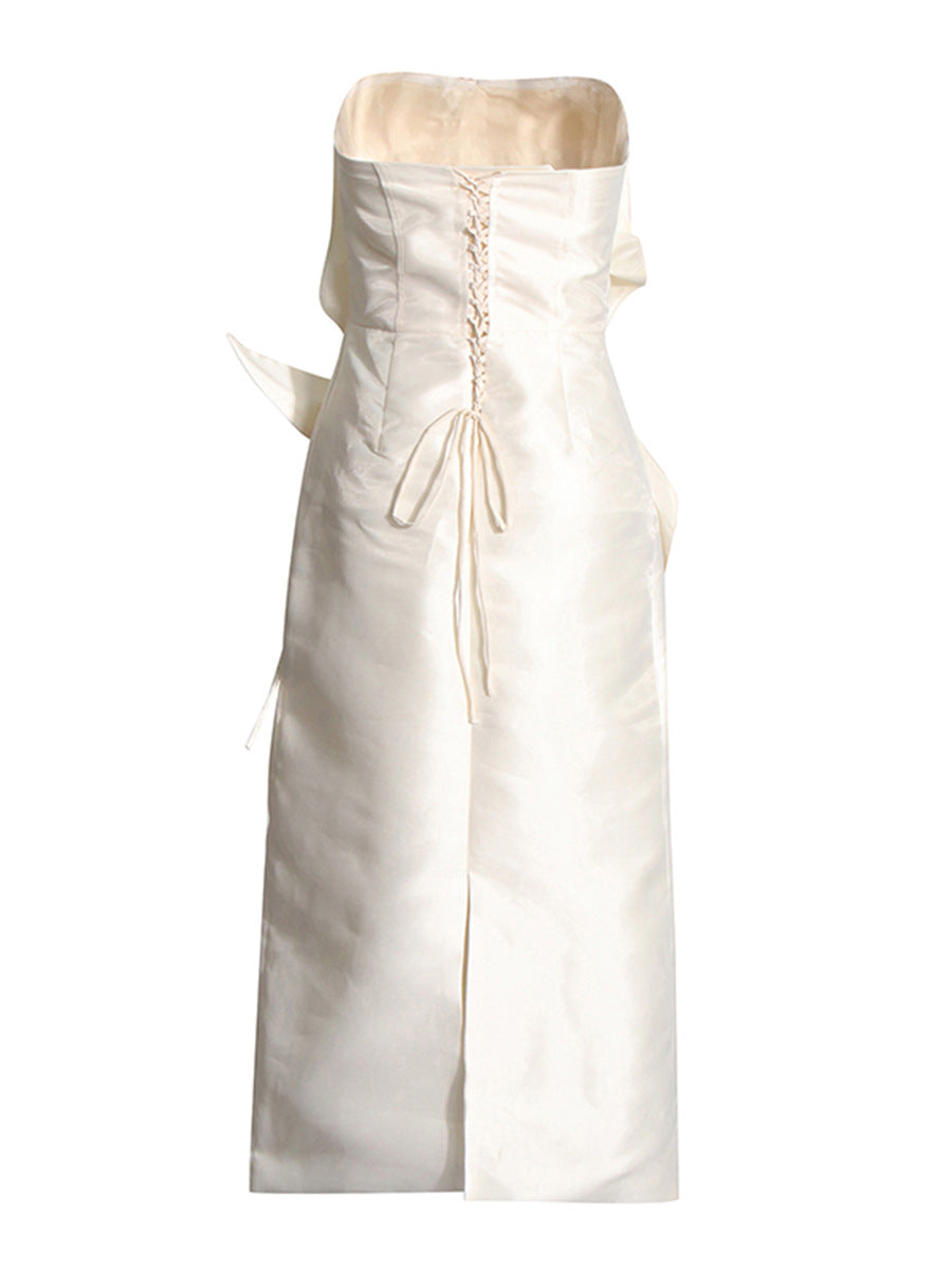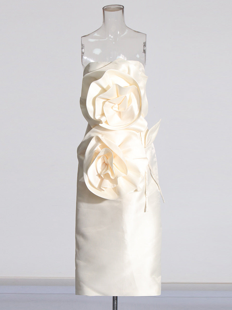Plataz Dress Dress 2025 New Three-Dimensional Flower Open Fork Solid Color Repair Kite Summer Long Dress