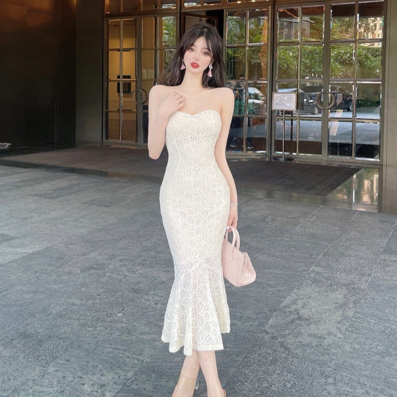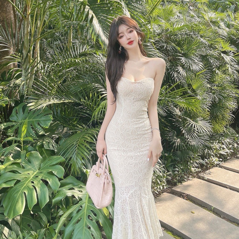 Plataz Dress Dress Summer Women's Sexy Temperament Long Shoulder Fishtail Repair Corset Dress