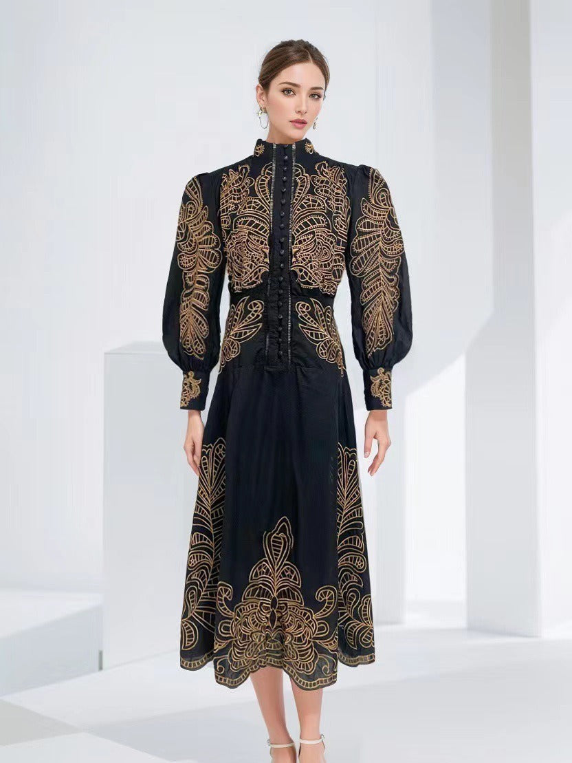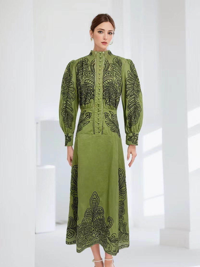 Plataz Early Spring And Autumn New Collar Embroidery Embroidery Process Single Buckle Waist Long Dress Woman