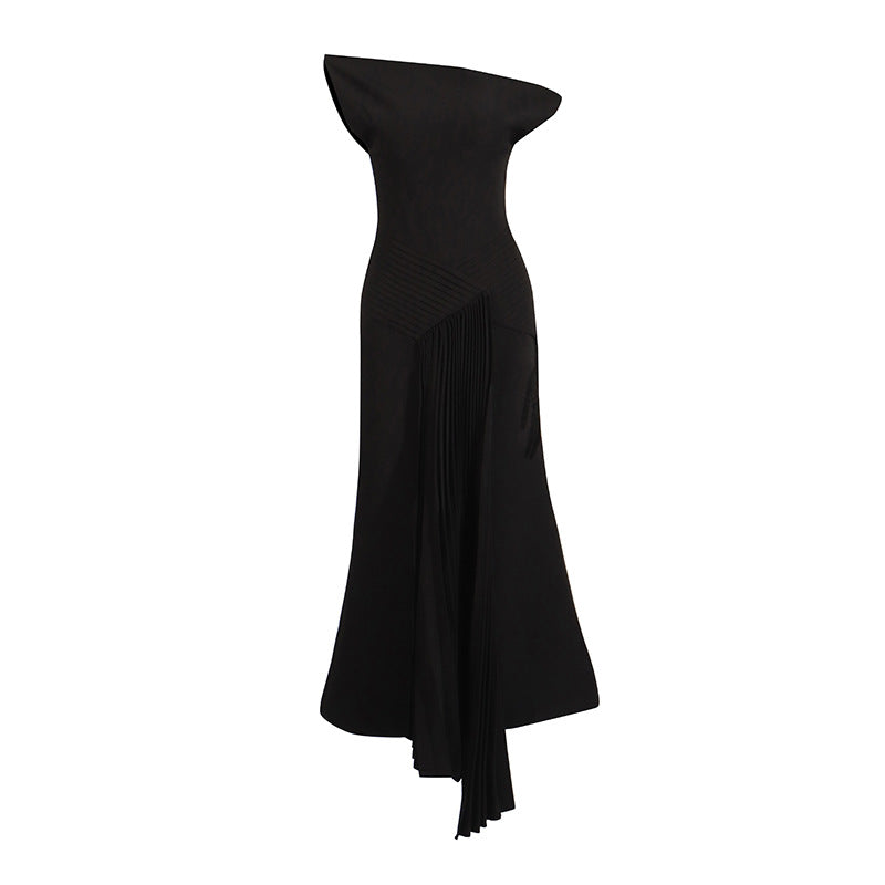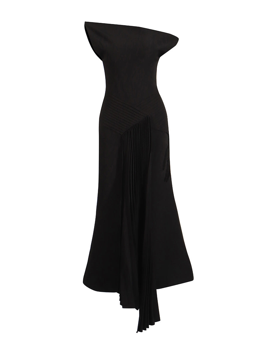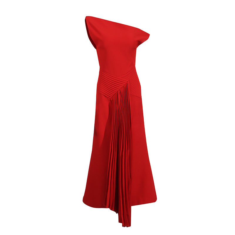 Plataz Elegant Retro Style Dress 2025 Summer New Slanted Shoulder Irregular Temperament Dress Dress Woman