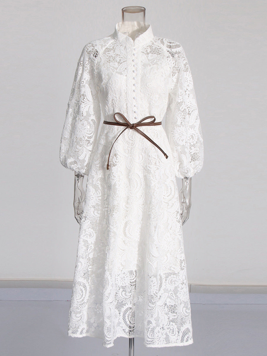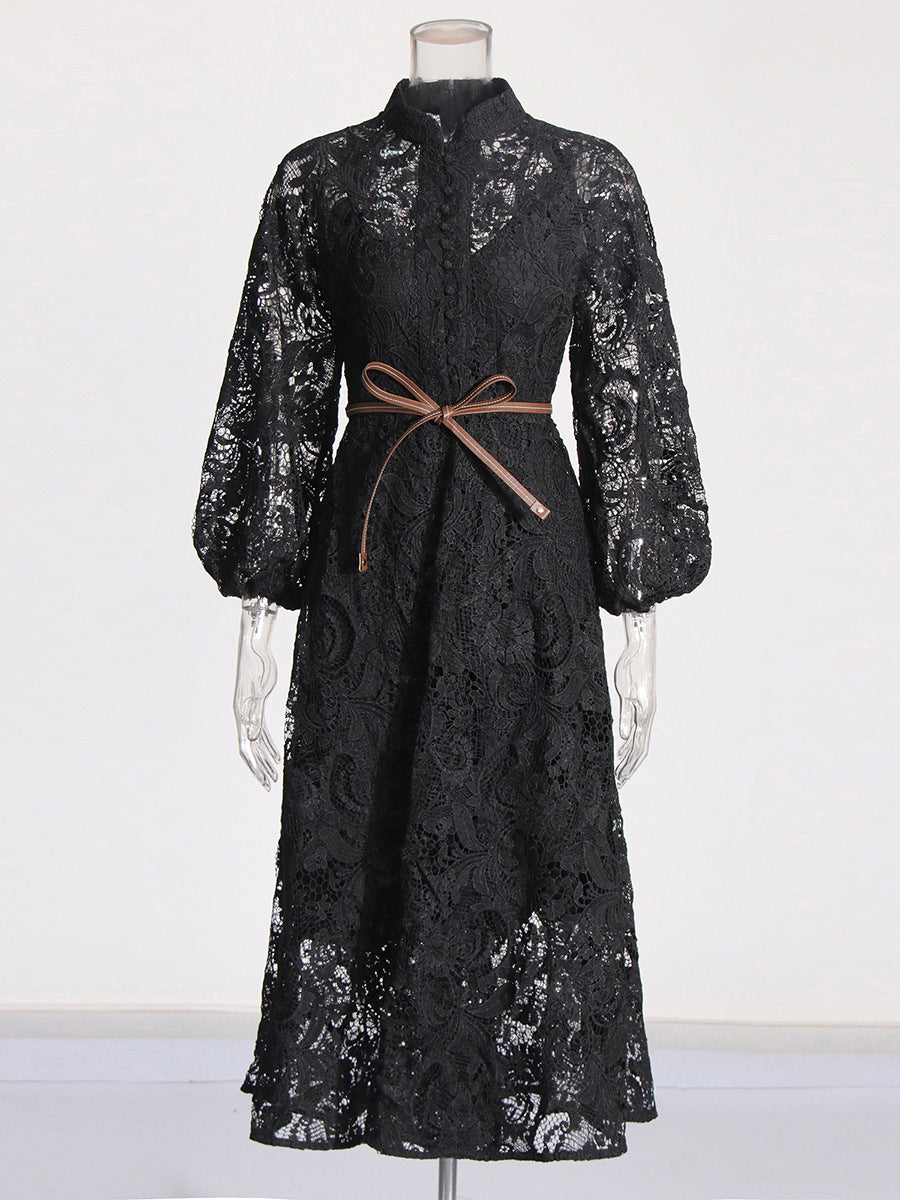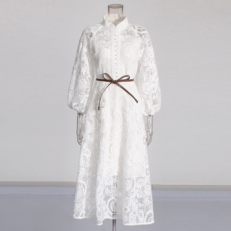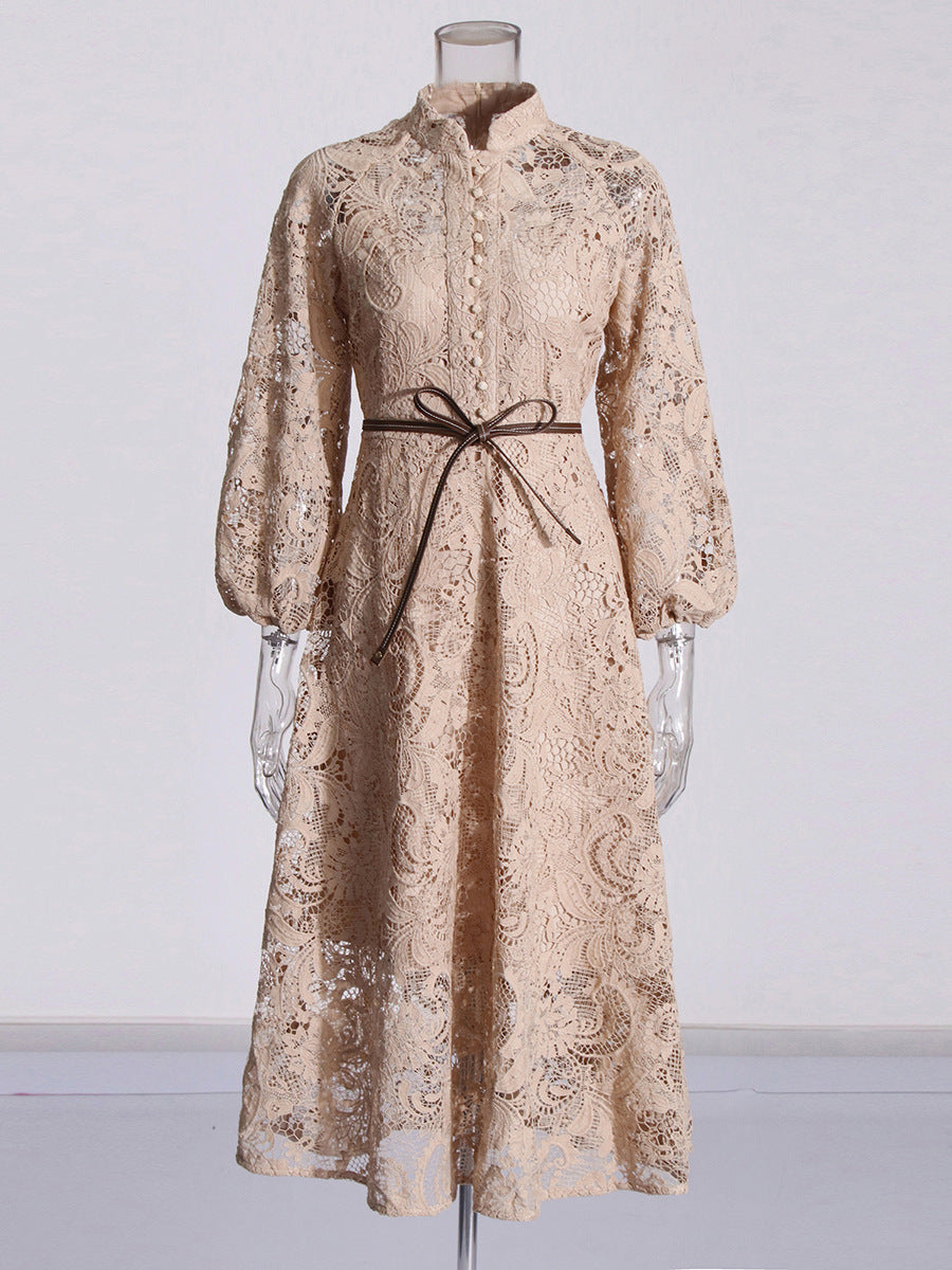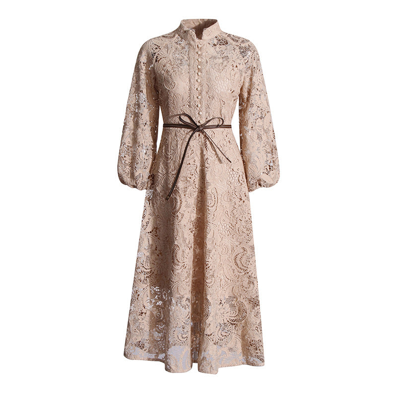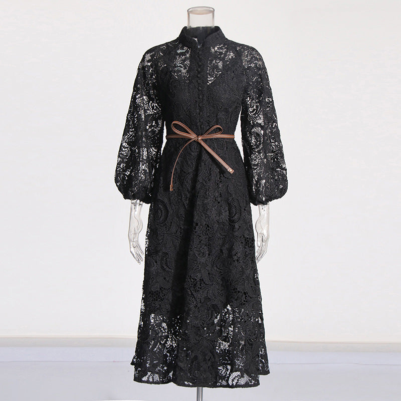 Plataz Elegant Retro Style Dress Woman 2025 Spring High-End Heavy Industry Lace Hollow Waist Dress