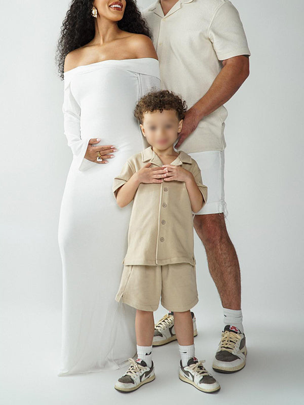 Plataz Elegant White Off Shoulder Bodycon Mermaid Falbala Floor Mopping Babyshower Maternity Photoshoot Maxi Dress Maternity