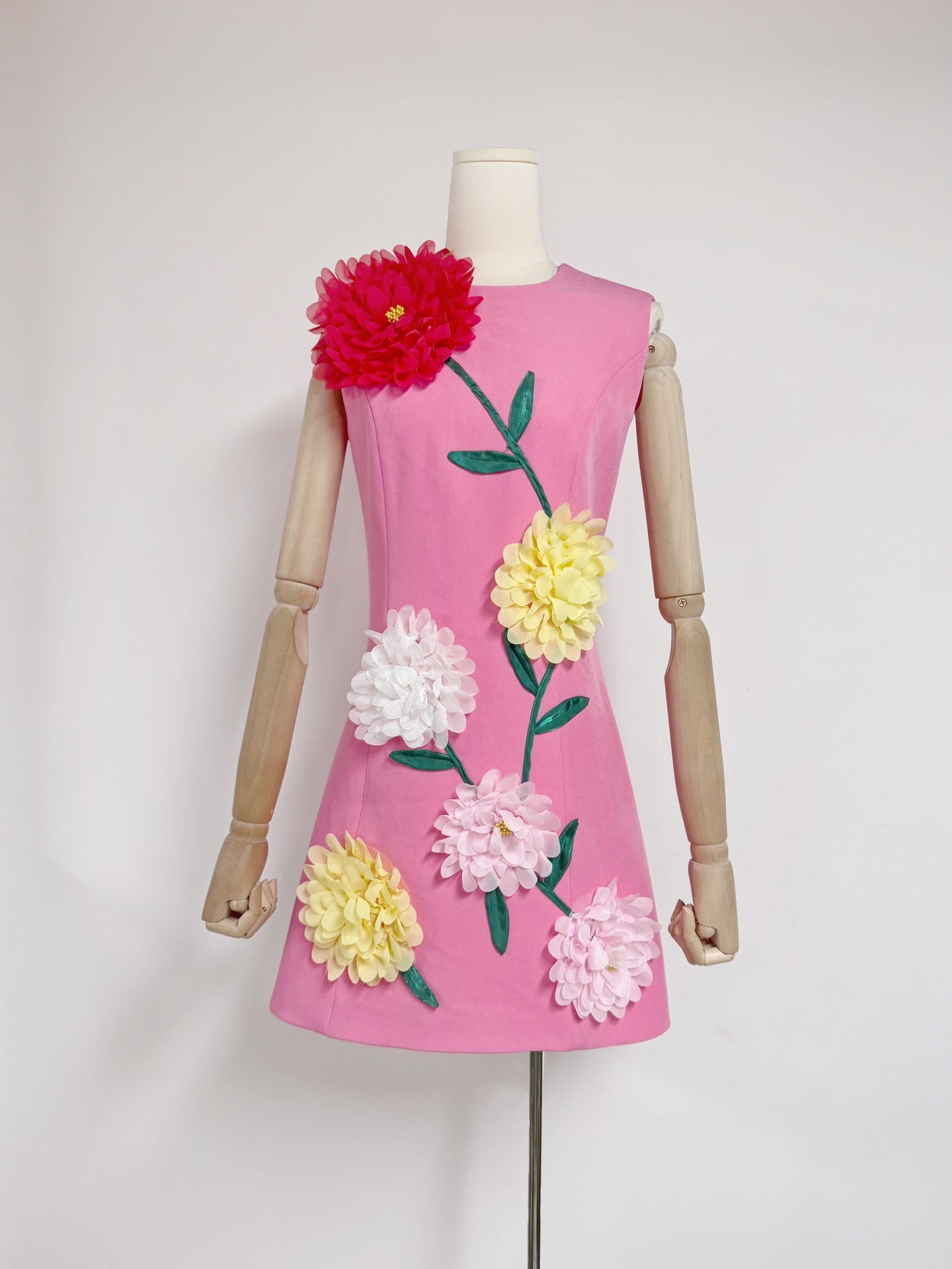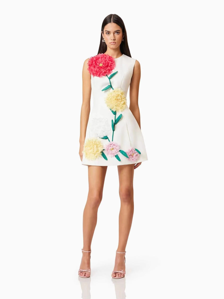 Plataz Fashion Niche Three-Dimensional Decorative Dress 2025 New Flower Slim Round Neckless Midsleeveless Mid-Dress