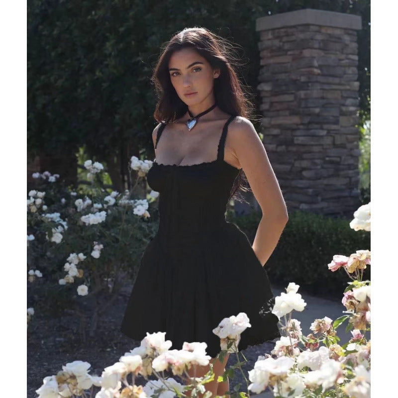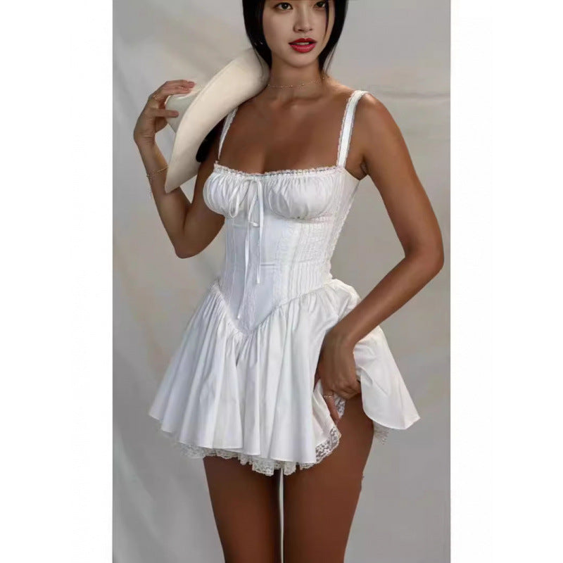 Plataz Fish Bone Sling Dress Summer Ballet Dopamine Wearing Sweet Waist Small White Dress