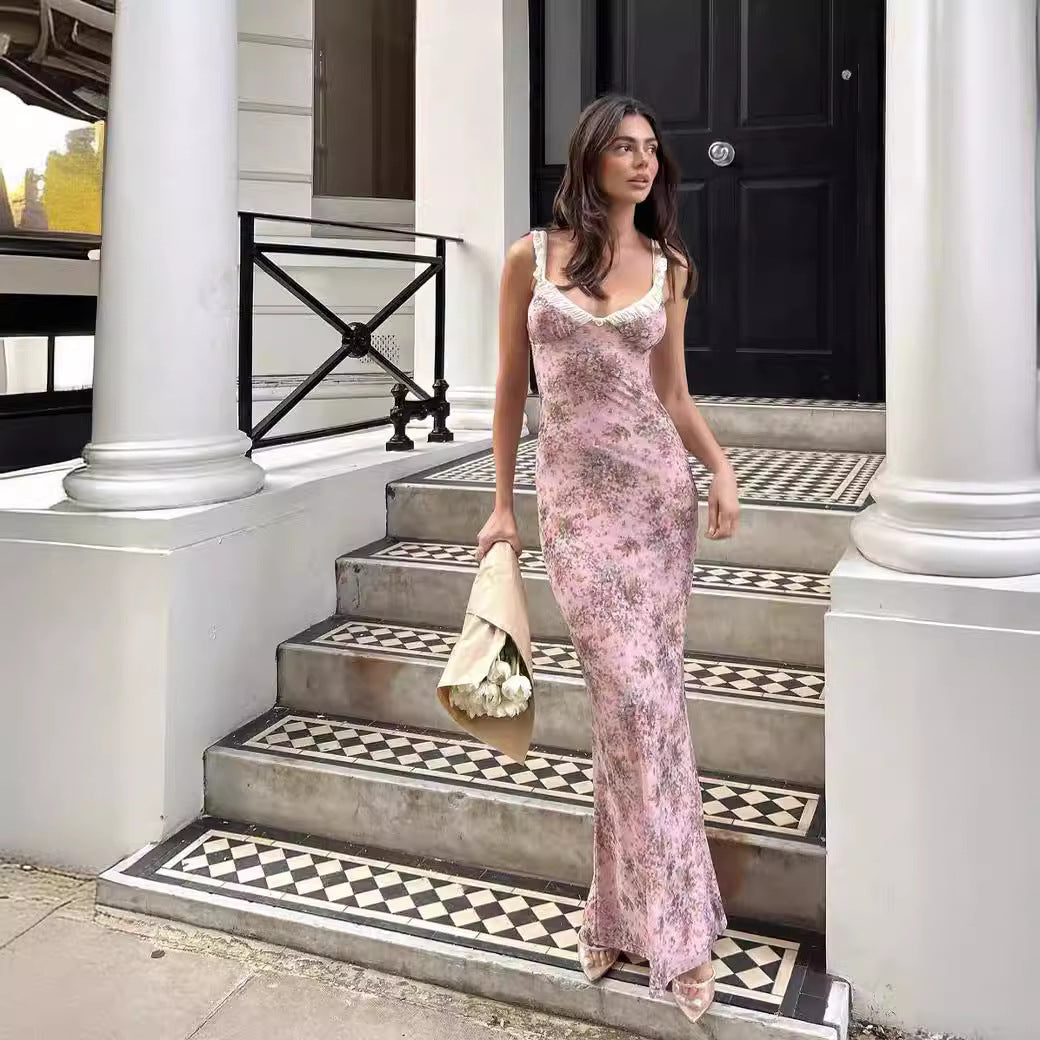 Plataz Fragmented V-Neck Folded Slings Slim Dress Woman 2024 Early Spring New Seaside Holiday Dress