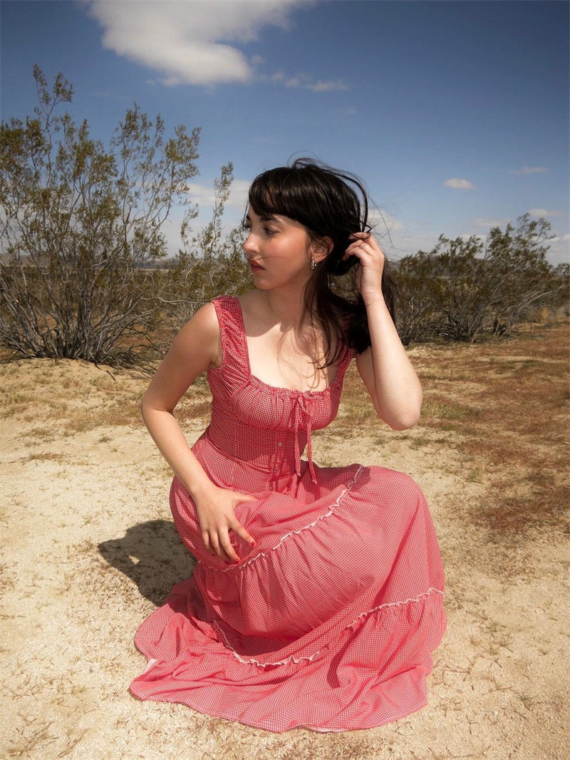 Plataz Hadid's Same Seaside Holiday French Sling Dress 2025 Summer New Lattice Beach Dress