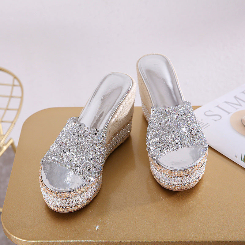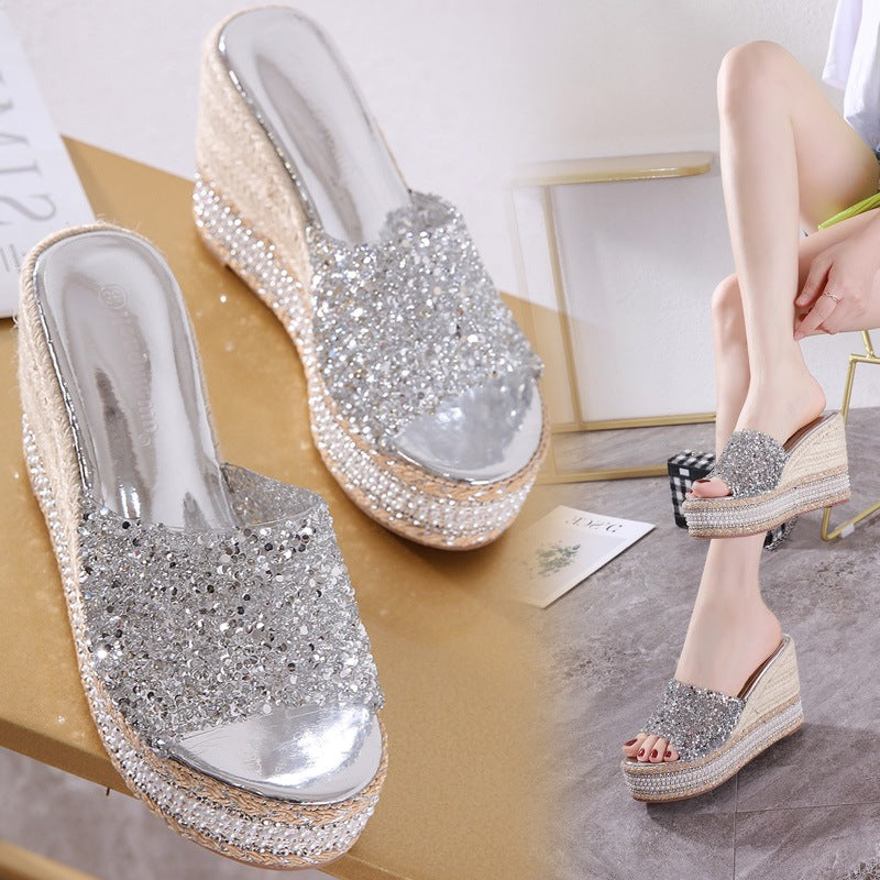 Plataz High Water Drill Slope In The Pine Shoes And The Summer Cool Slippers Waterproof Table Weaving High Heels Wear Thick Bottom Slippers High Quality Shoes