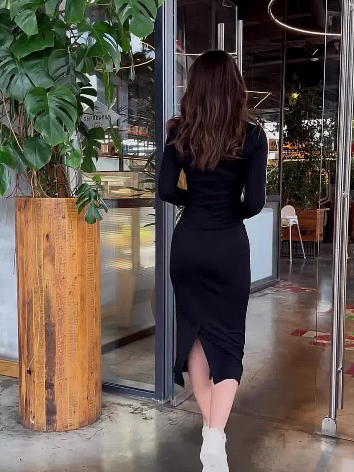 Plataz Hips Light Cooked Wind Comfortable And Casual Body Slim Thin Long Sleeve Pull-And-Slung V-Neck Dress