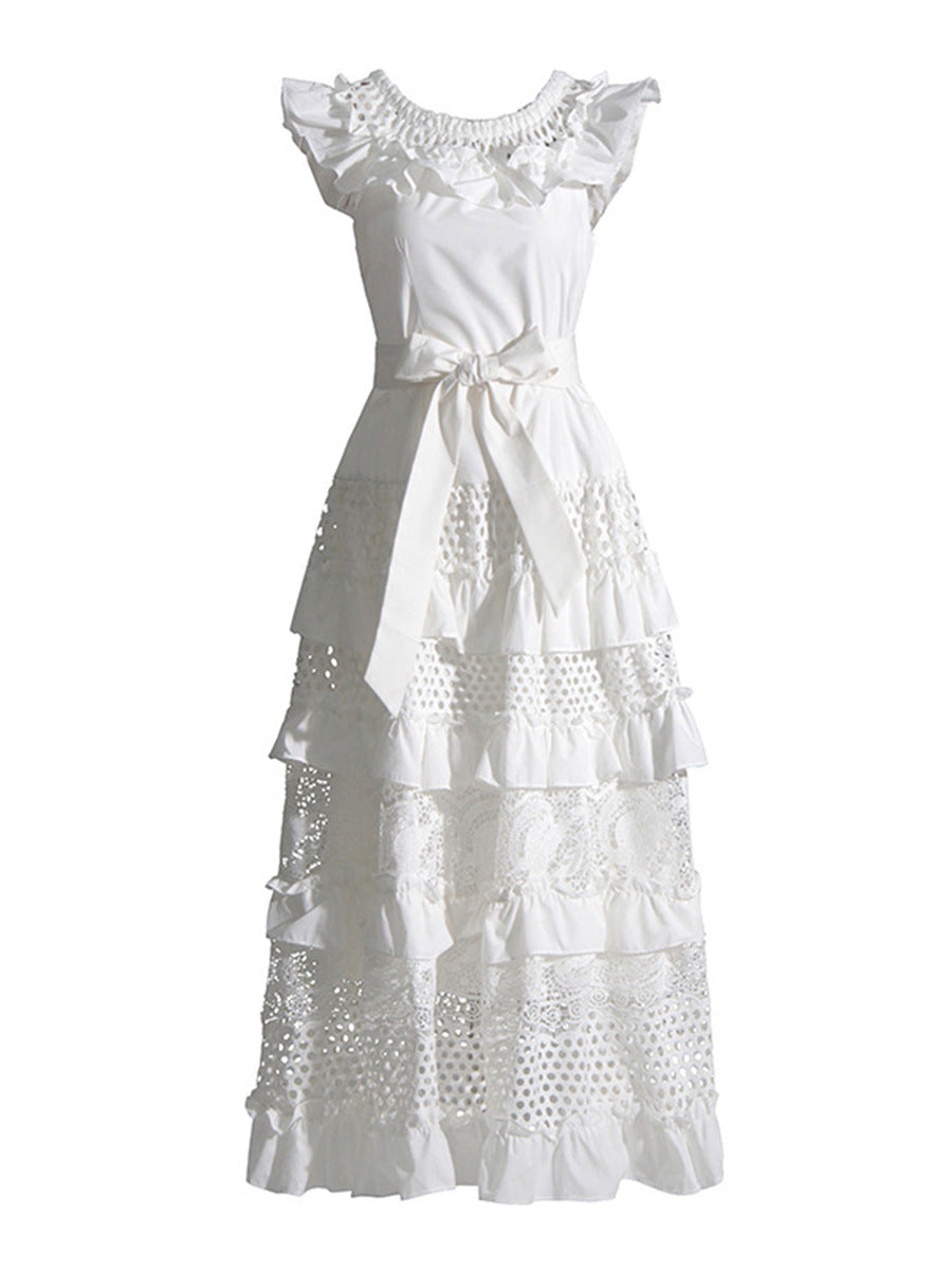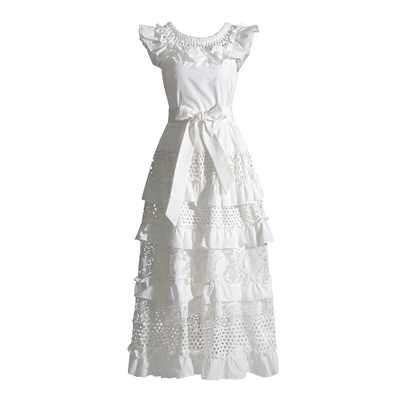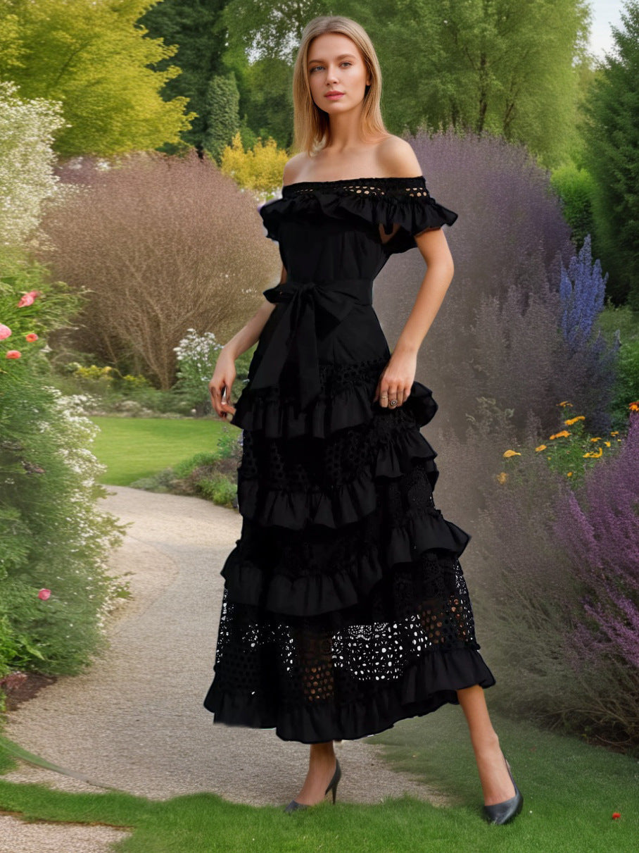 Plataz Holiday Style Dress 2025 Spring New Word Shoulder Tie With Thin Embroidery Temperament Fairy Dress