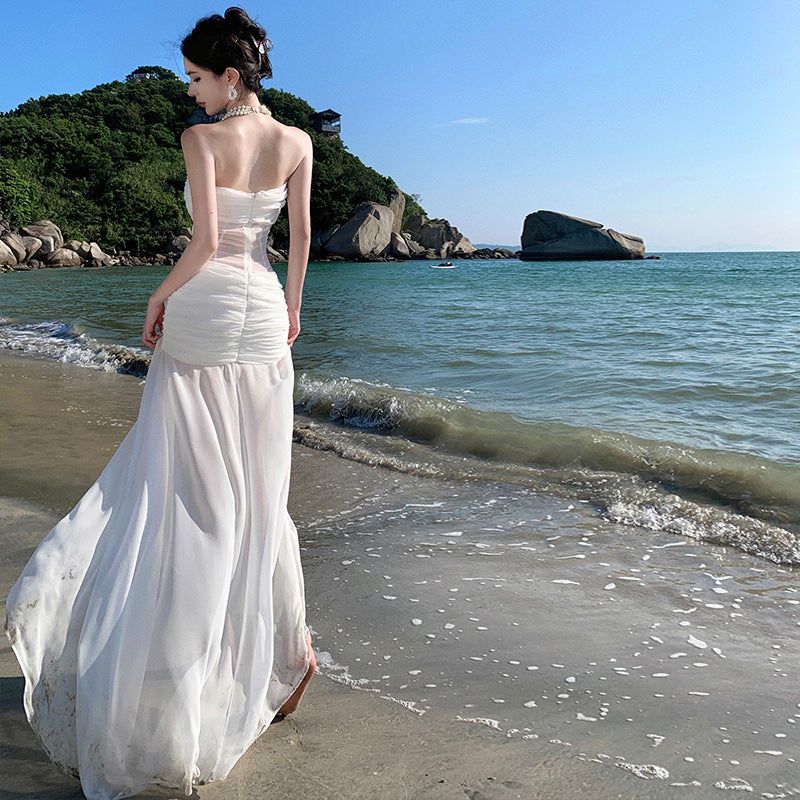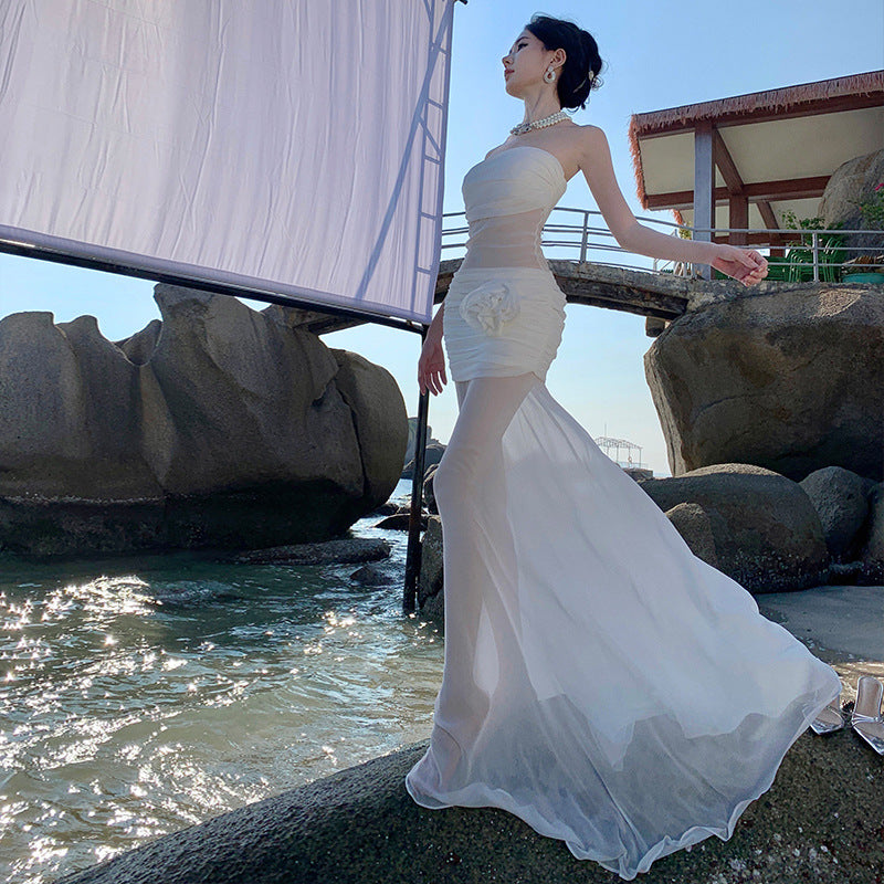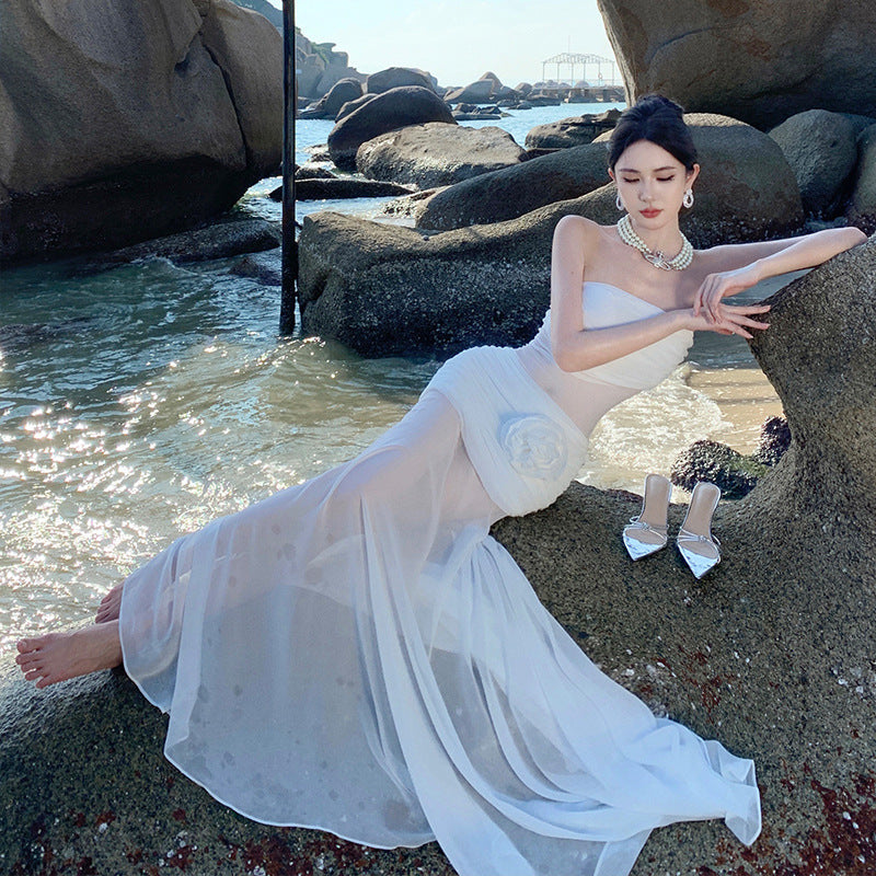 Plataz Holiday Style Sexy Perspective Chiffon Flower Bra Dress Female Design Sense Of Body Quality Dress