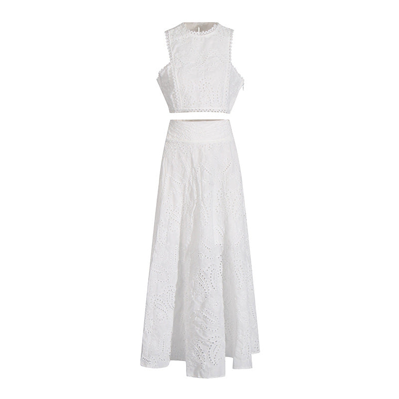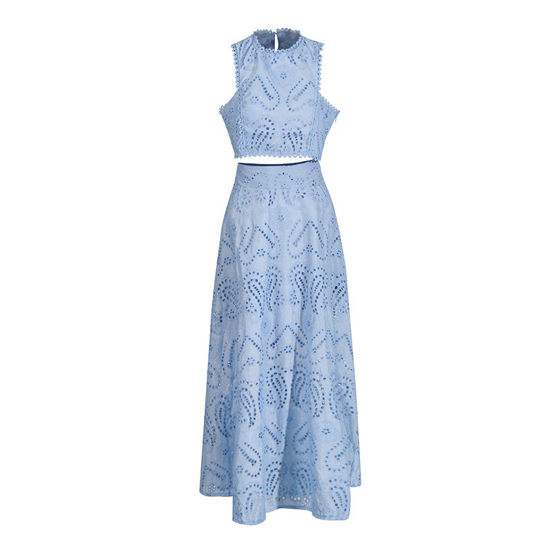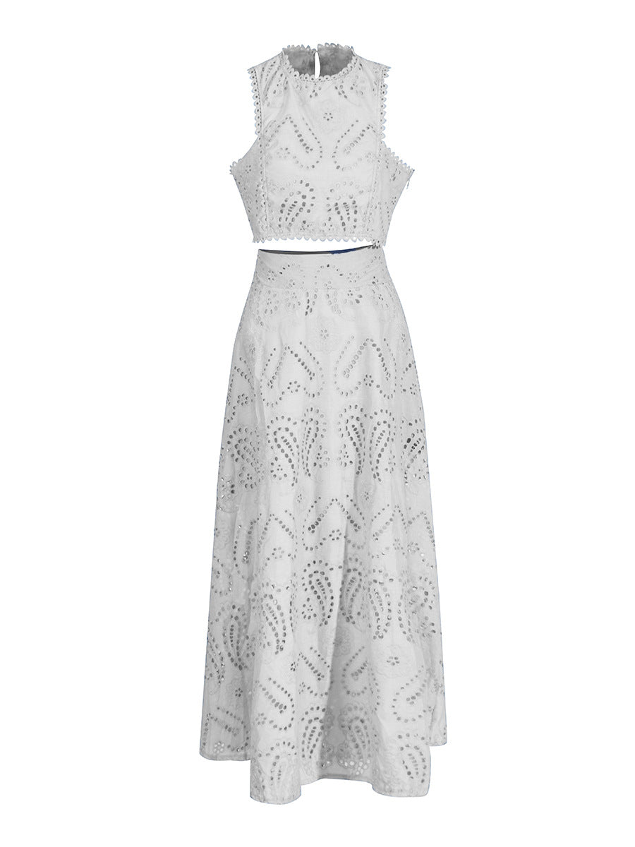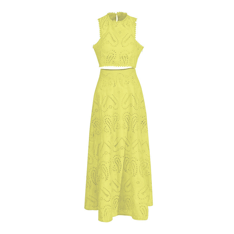 Plataz Holiday Wind 2025 New Round Collarless Bare Waist Vest High Waist Half-Dress Embroidered Two Sets Of Women