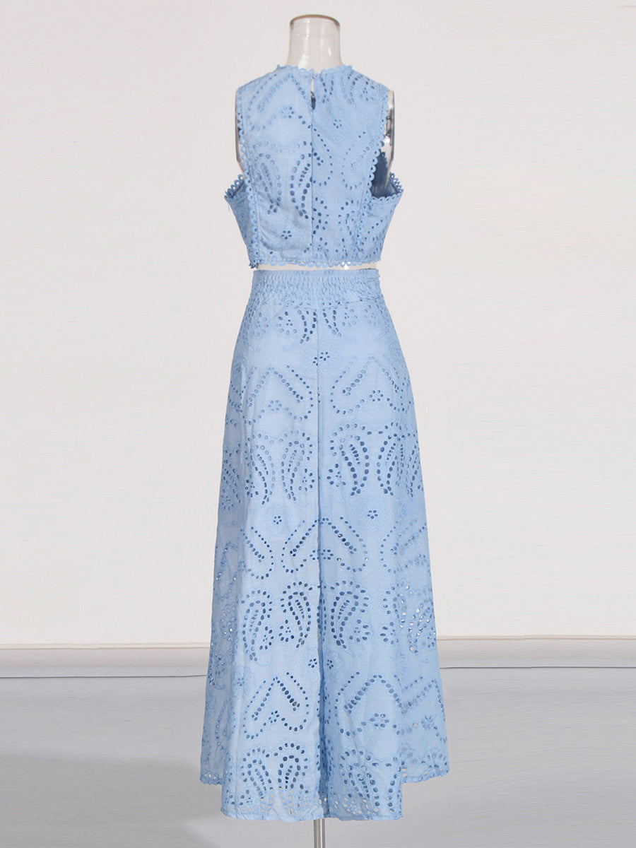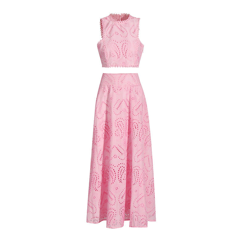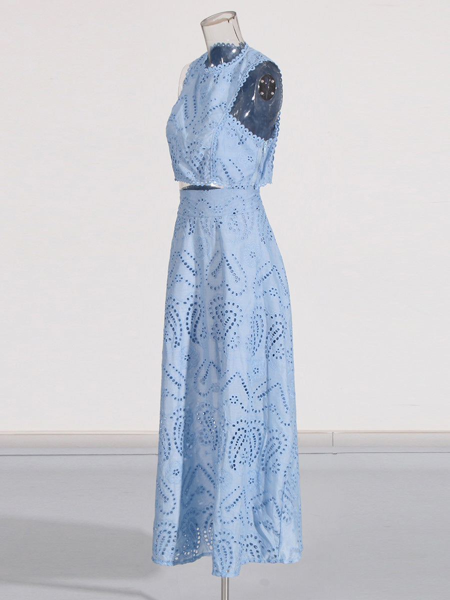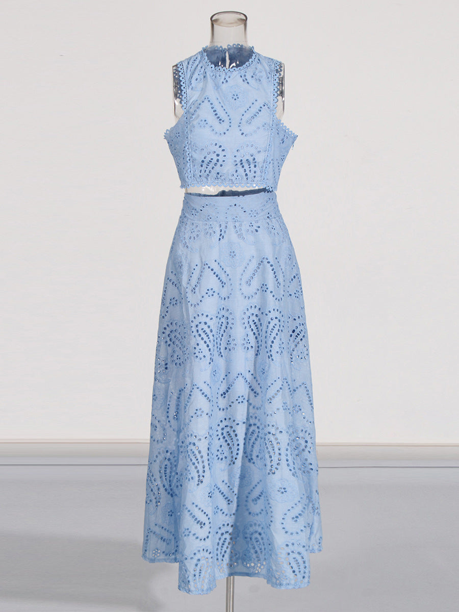 Plataz Holiday Wind 2025 New Round Collarless Bare Waist Vest High Waist Half-Dress Embroidered Two Sets Of Women