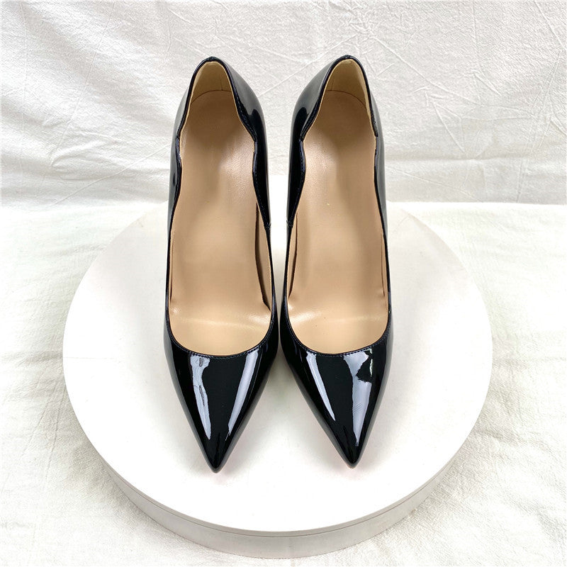 Plataz New Black Patent Leather High Heels 12CM Pointed Thin-Heeled Women's Shoes High Quality Shoes