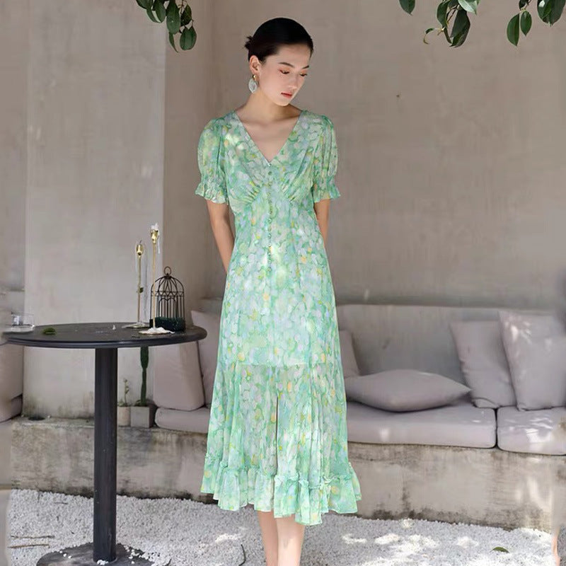 Plataz New Sen Ion Purple Rags Fashion Fresh Body Soak Sleeve Holiday Trip To Shoot Long Chiffon Dress Woman