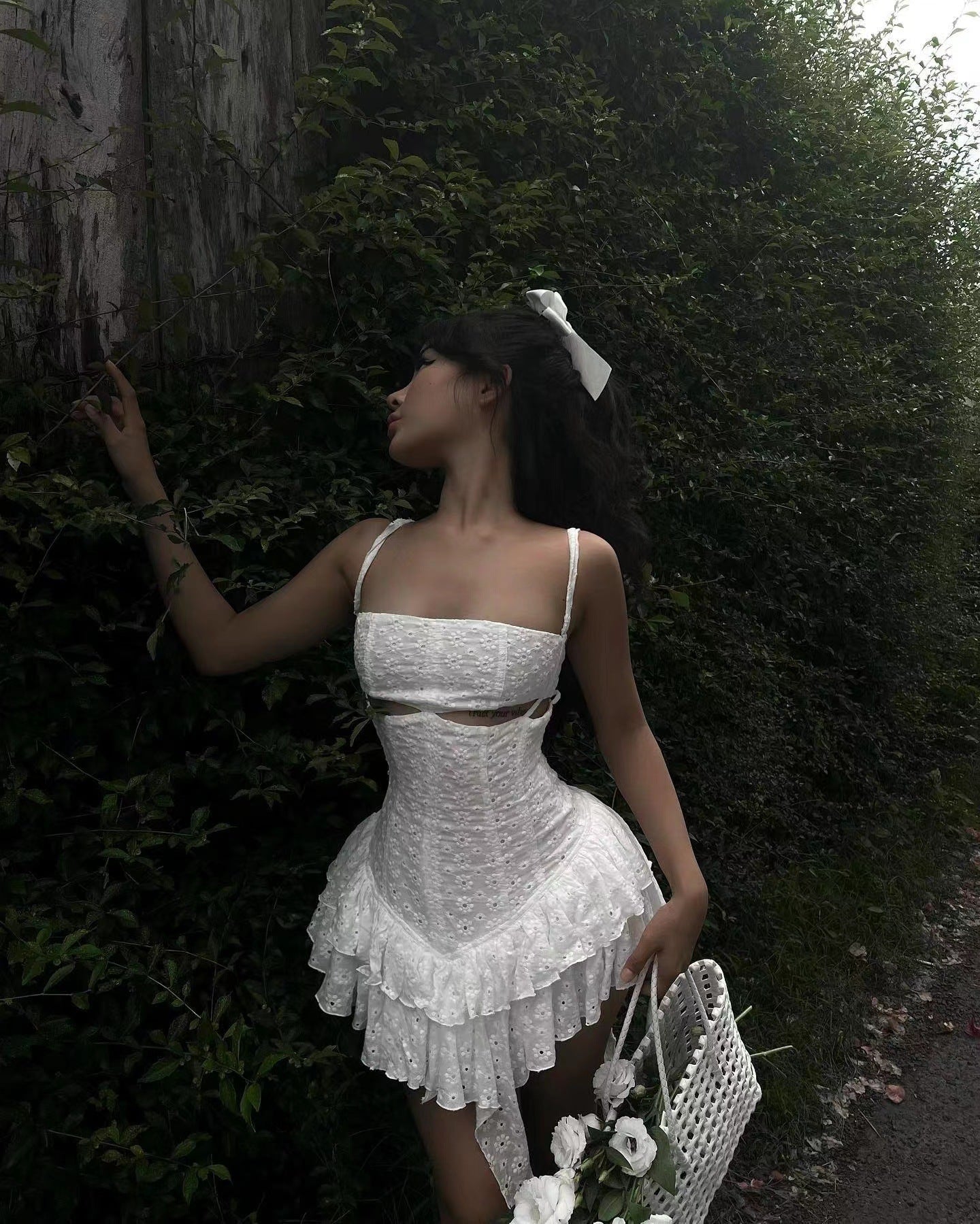 Plataz Niche Embroidery Sling Dress Female Design Temperament Slim Bra Dress Seaside Pure Lusty Short Dress