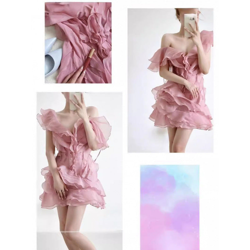 Plataz Niche French Lotus-Side Fairy-Style Fascles Languid Languie Shoulder Irregular Dress
