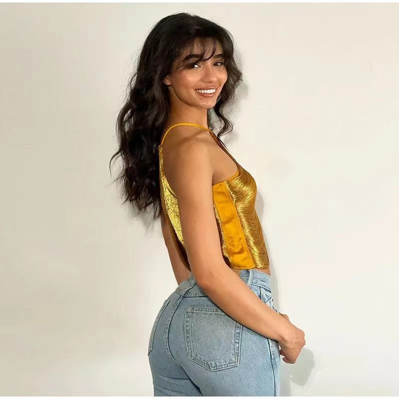 Plataz Oh Sexy Out-Shoulder Sling Small Vest Irregular Tuxedo Hanging Neck Top