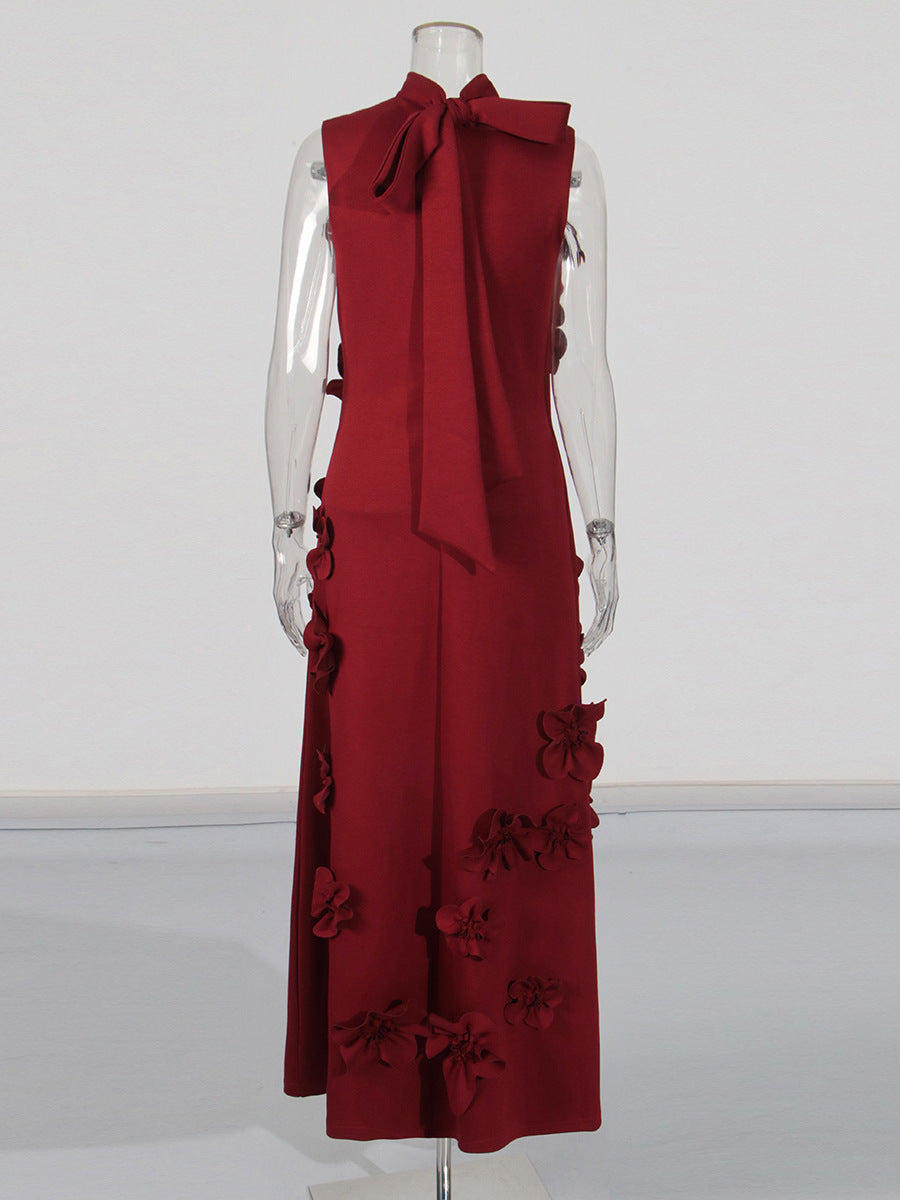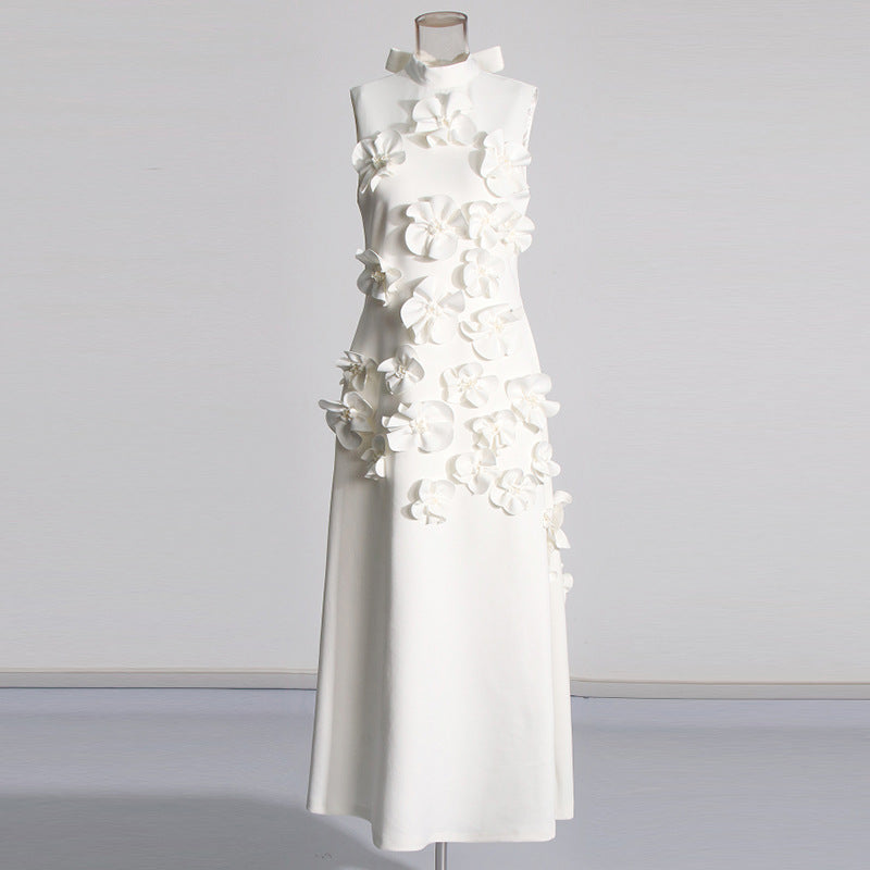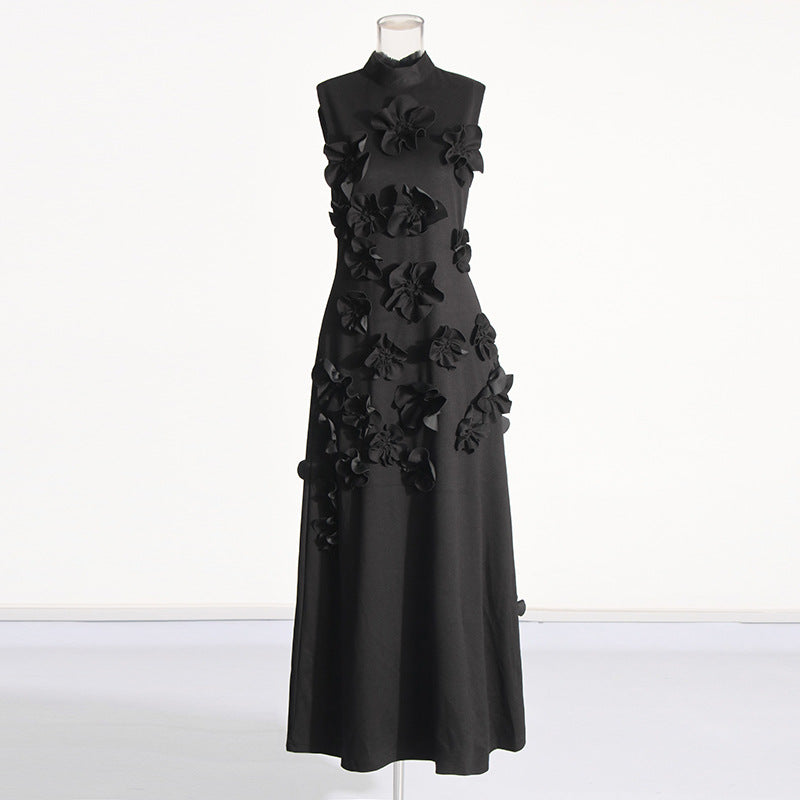 Plataz Retro-Style Niche Walking Show 2025 Summer New Round-Neck Sleeveless Design Long Three-Dimensional Floral Dress