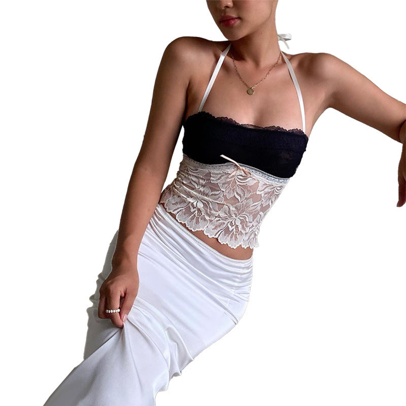 Plataz Sexy Hanging Neck Lace Blouse 2025 Summer New Umbilly Slinged Woman DJPT