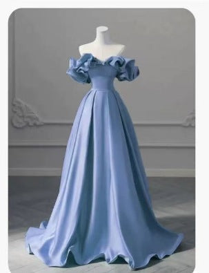 Plataz Shoulder Banquet Evening Dress Dress Female-Singen-Faced Yellow Temperament Light Luxury Niche High-End Art Exam Host Dress