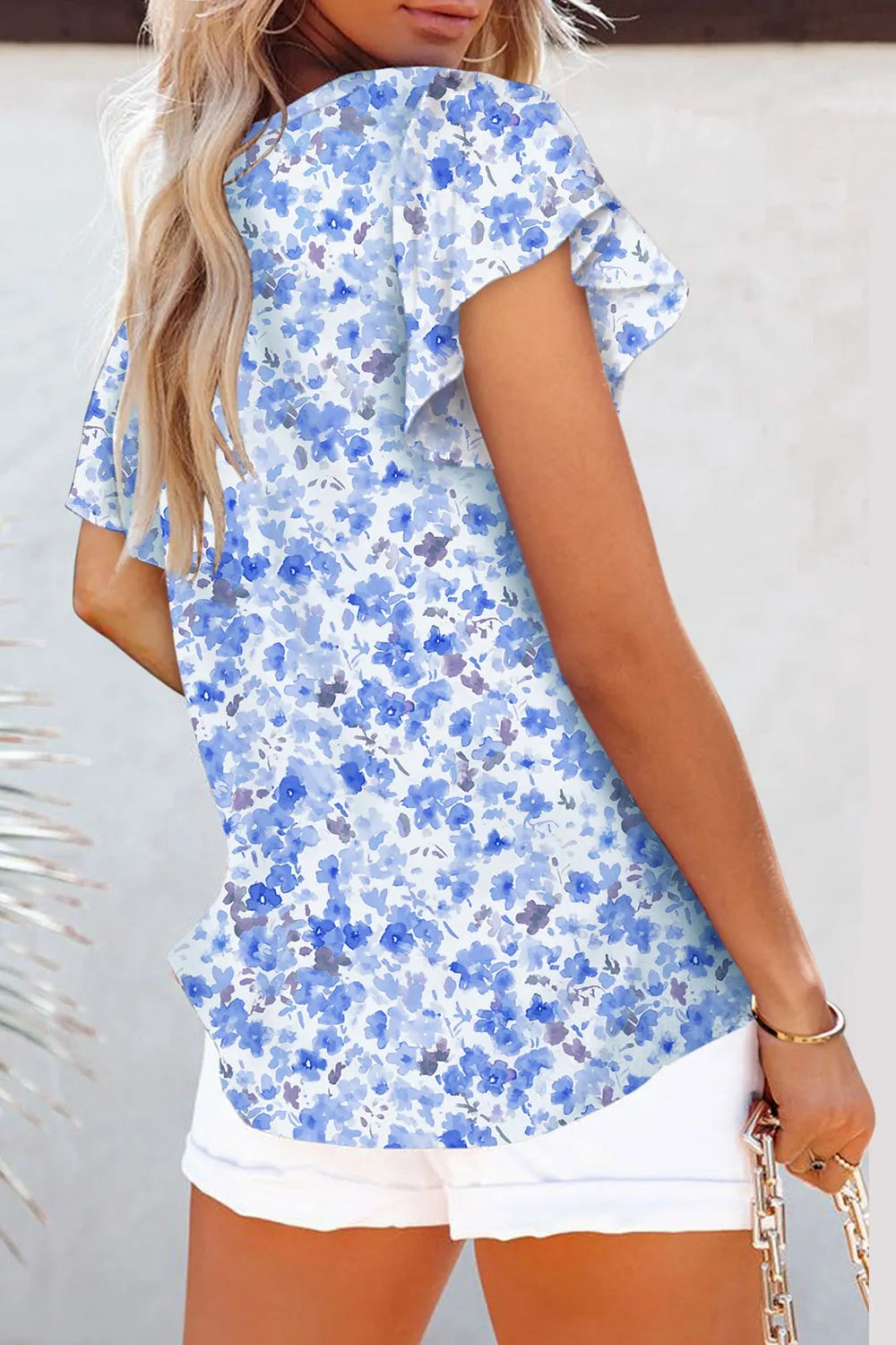 Plataz Sleeve Notched Floral Summer Blouse DJPT