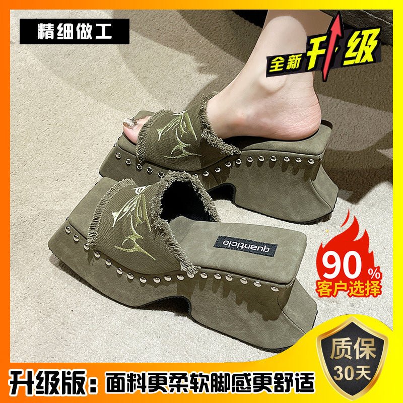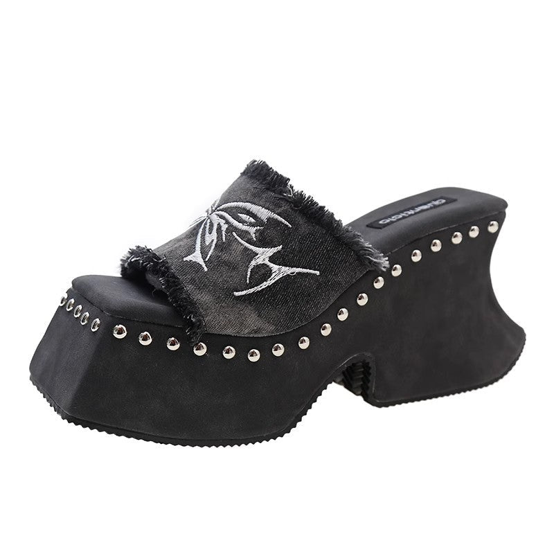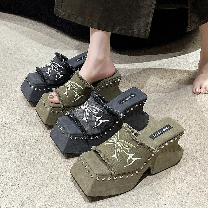 Plataz Slippers Women Wear 2024 Summer New Butterfly Thick-Bottomed Slippers Millennium Hot Girls Sexy Toe High-Heeled Sandals High Quality Shoes