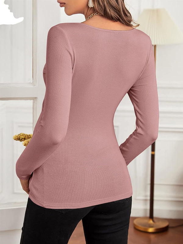 Plataz Solid Color Chest Cross V-Neck Long Sleeve Nursing Top Maternity Top Maternity