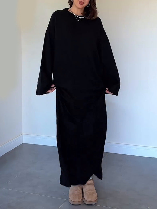Plataz Solid-Colored Loose Knee Collar Long Knitted Dress In Autumn 2024