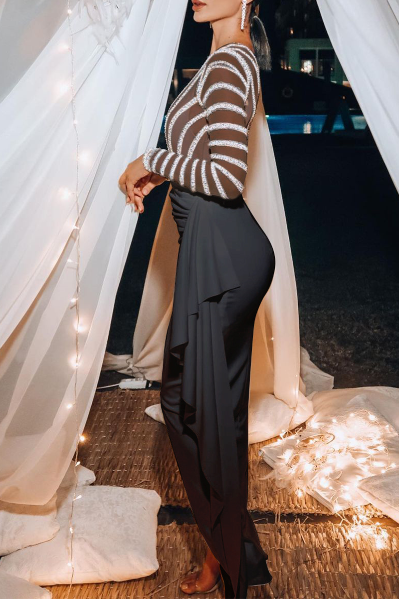Plataz Solid See-through Asymmetrical O Neck Evening Dress HZ1007