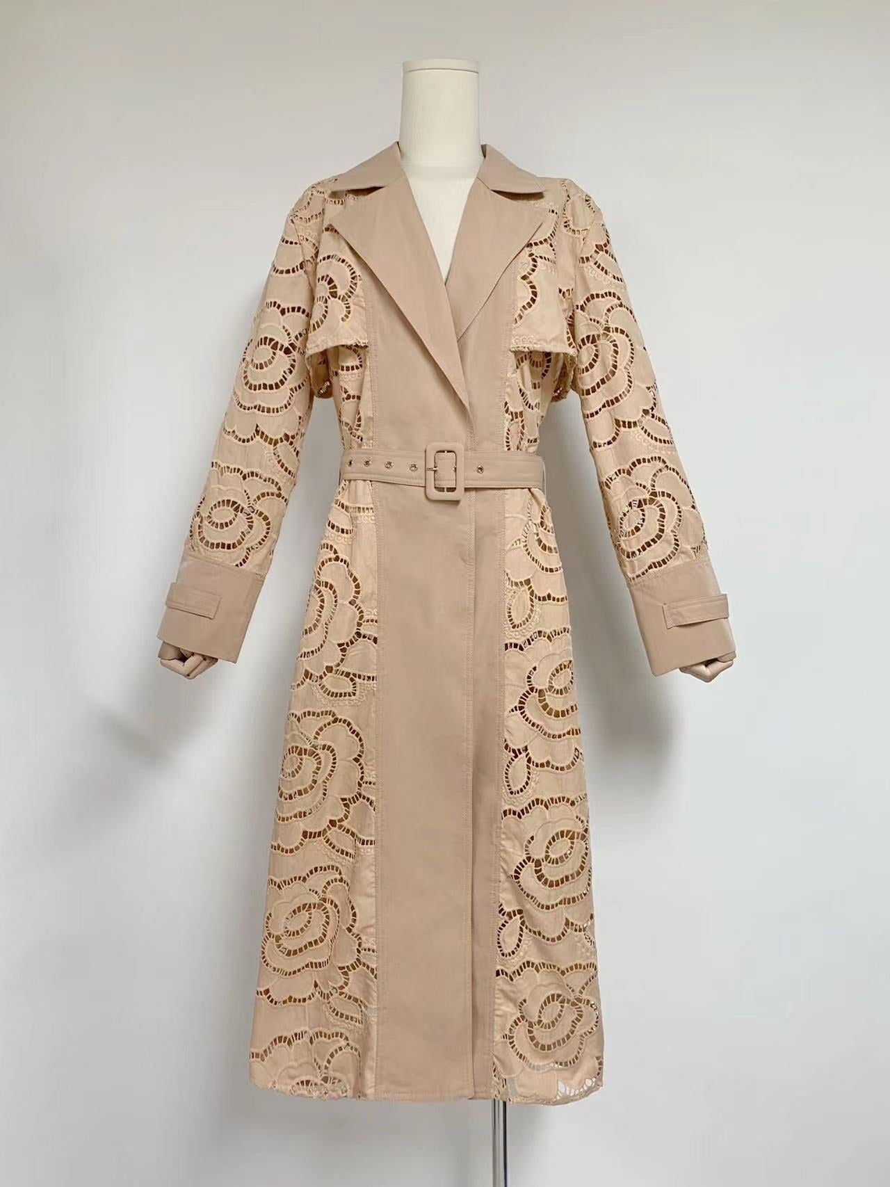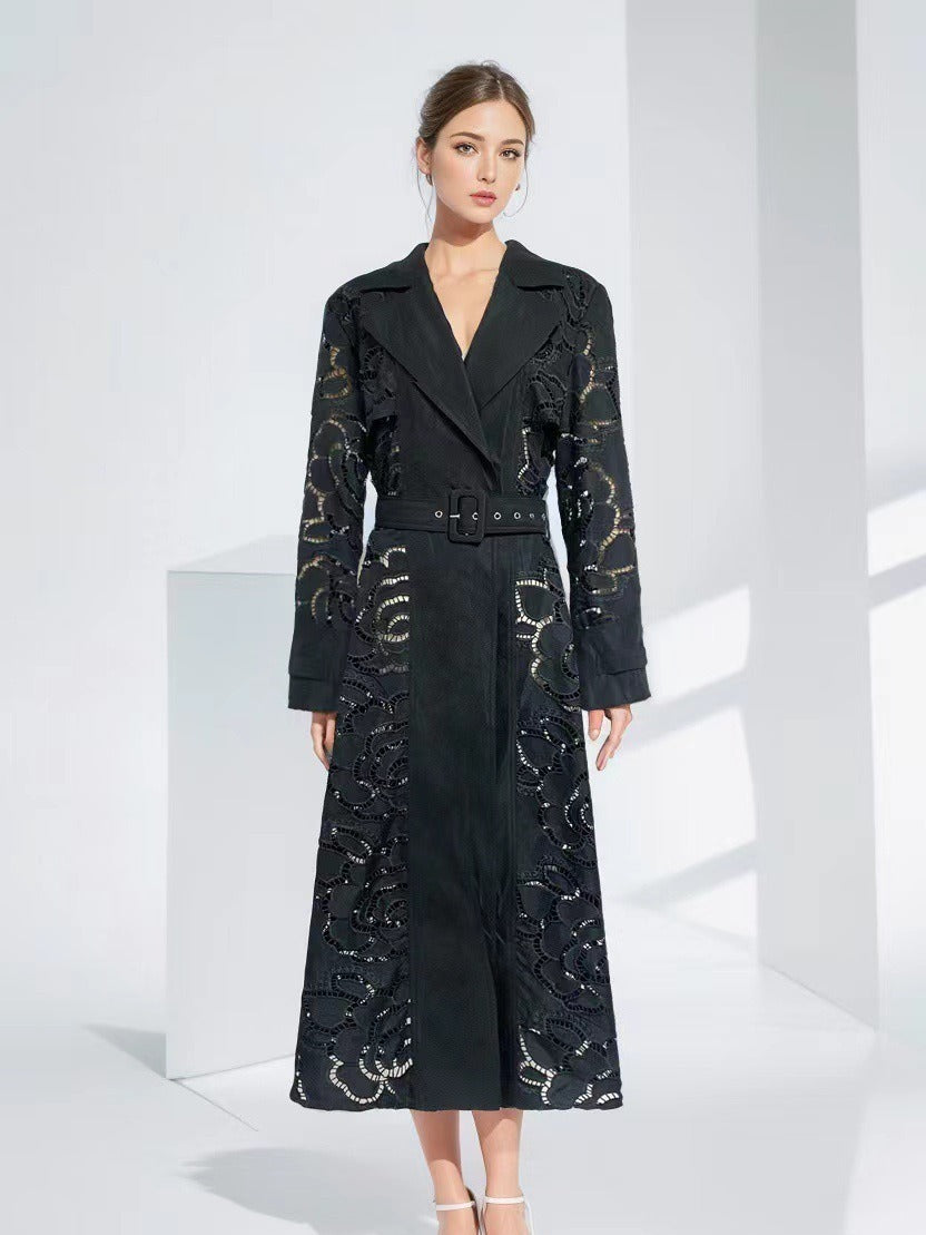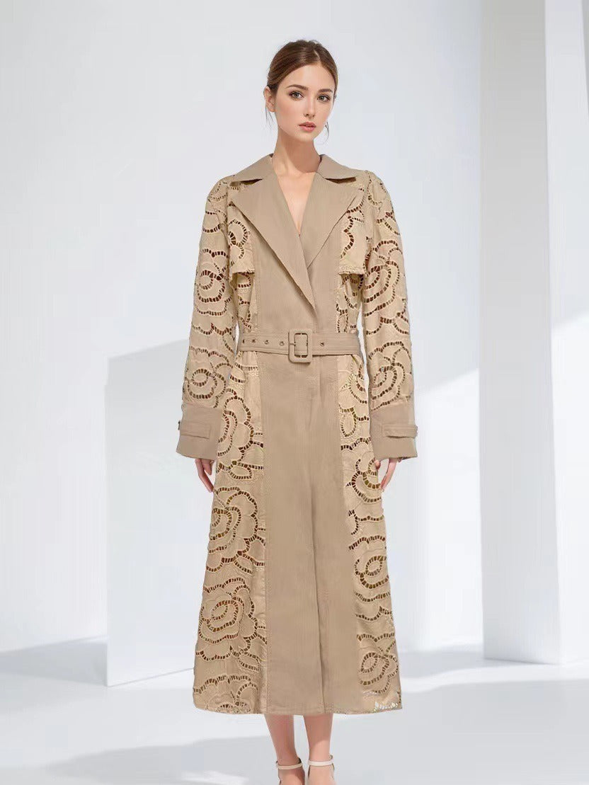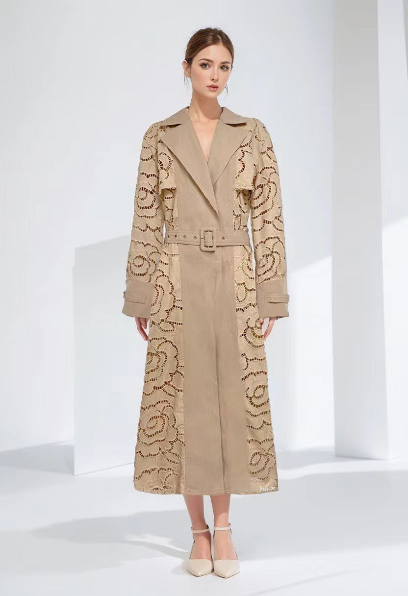 Plataz Style V-Neck Belt Belt Cut-In Empty Wind Coat Female 2025 New