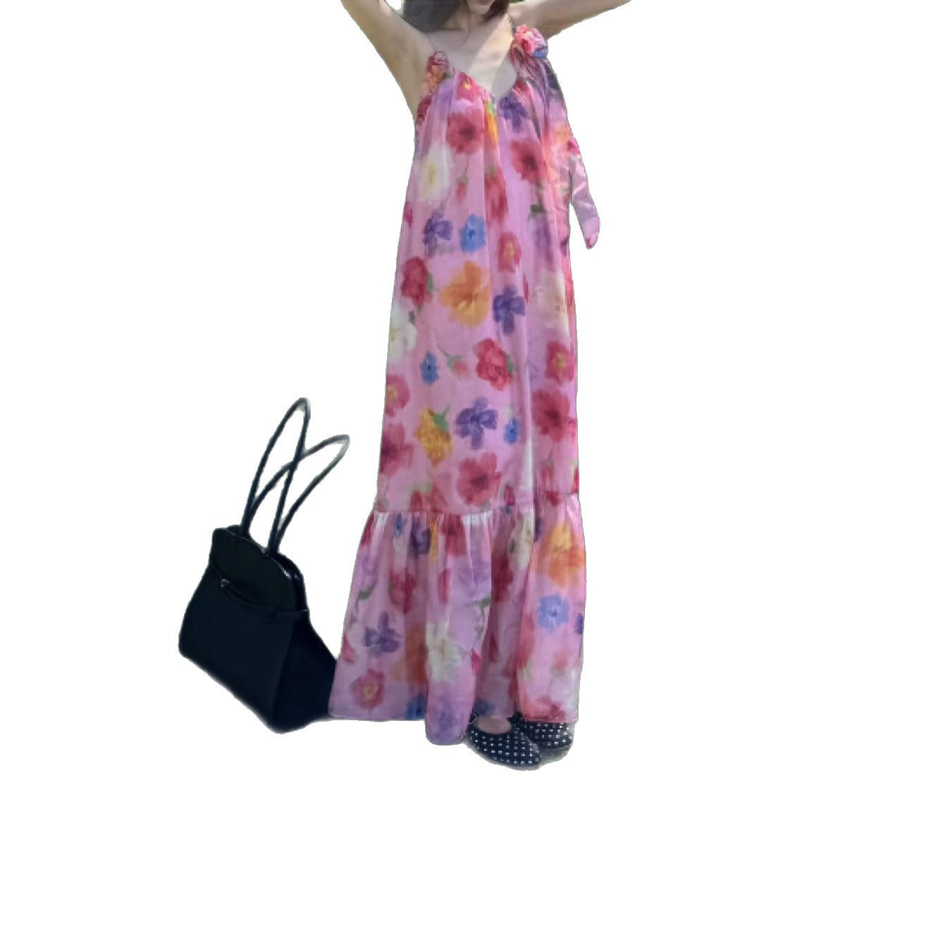 Plataz Summer Dress New Holiday Style V Tie Sling Dress