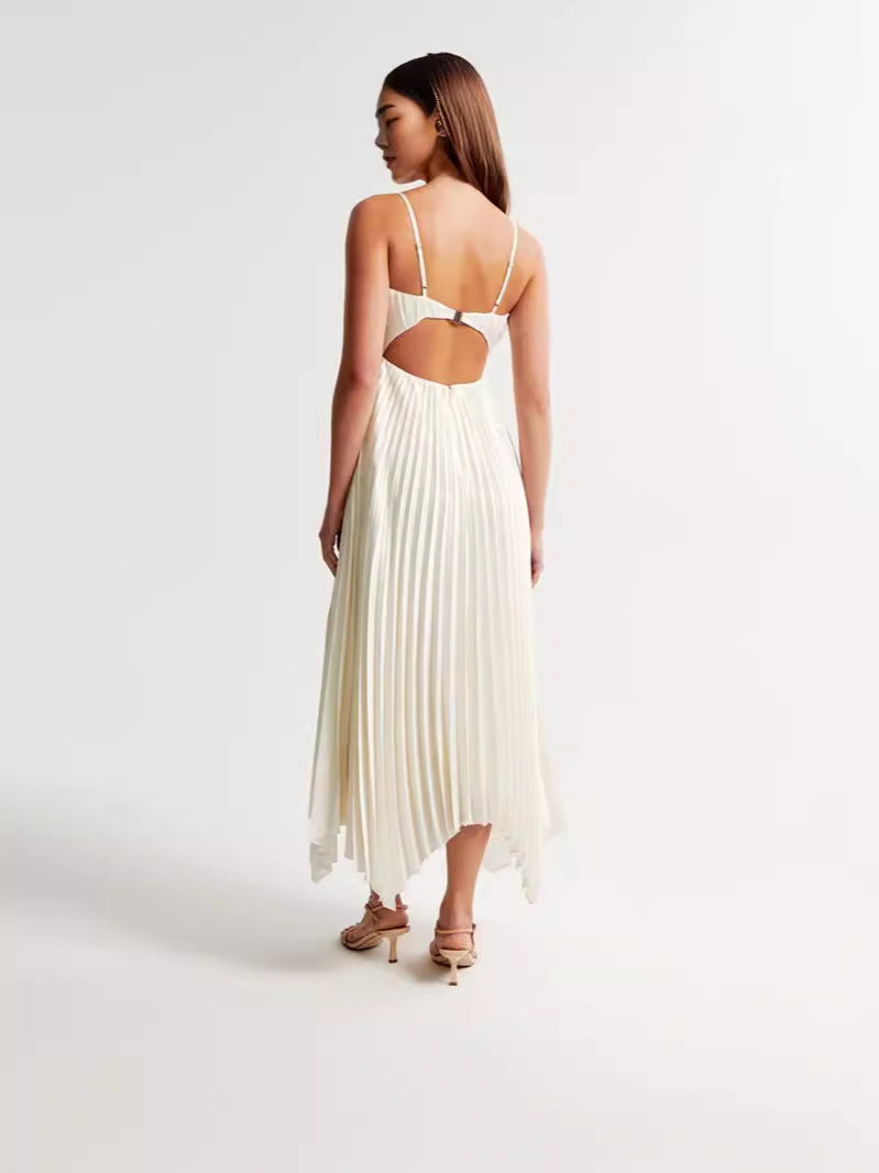 Plataz Summer New Sexy Fashion High-Funny Pressed Solid Color Suspension Dress