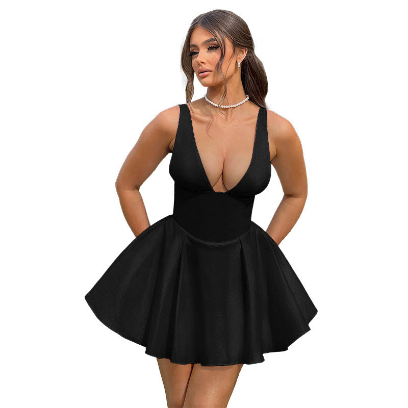 Plataz Summer Sexy Deep V Suspension Dress Girt Laming Slim Short Dress Girl DJPT