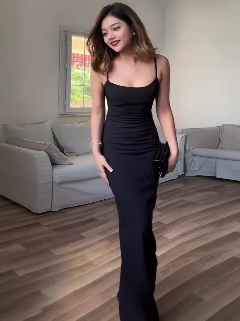 Plataz Summer Women's New Sexy High-Waisted Solid-Colored Backs Sling Dress
