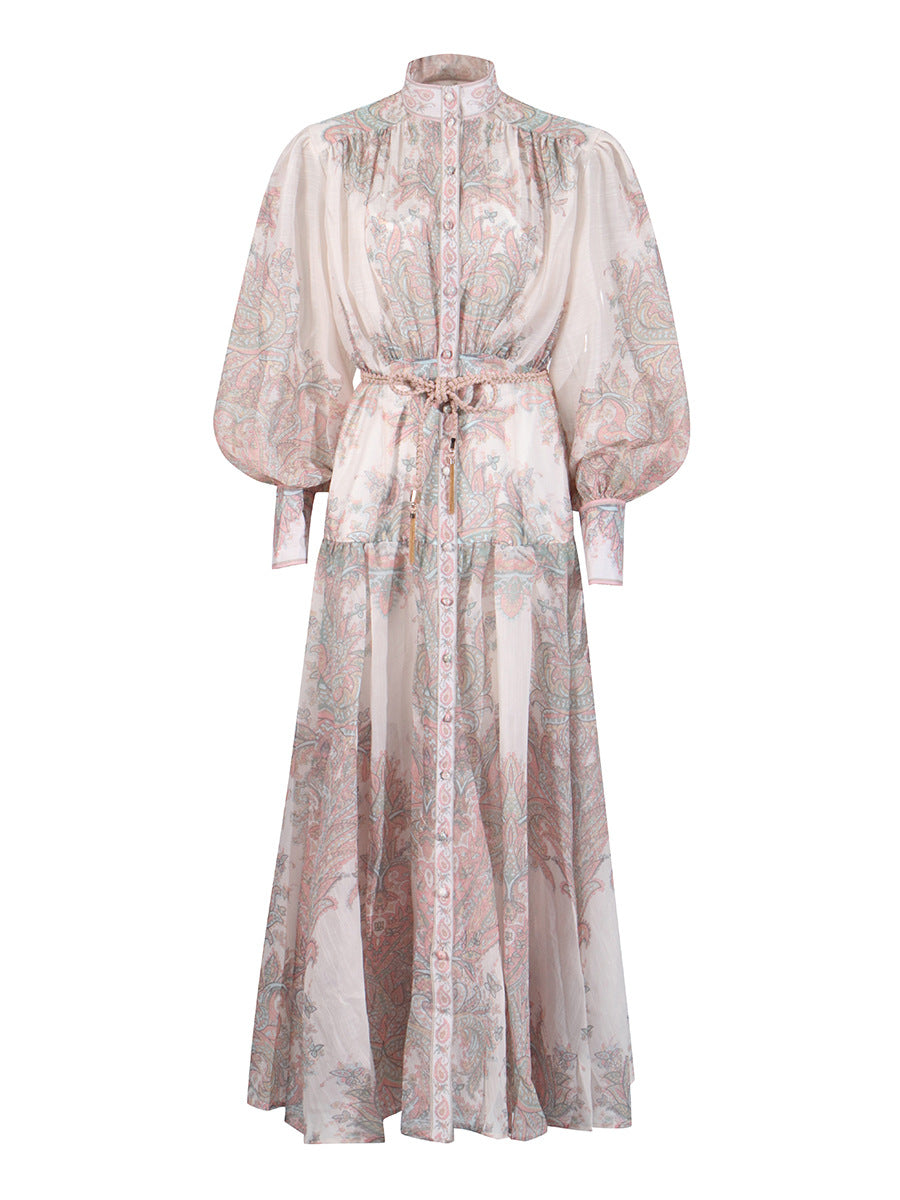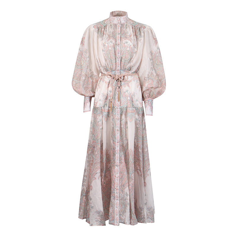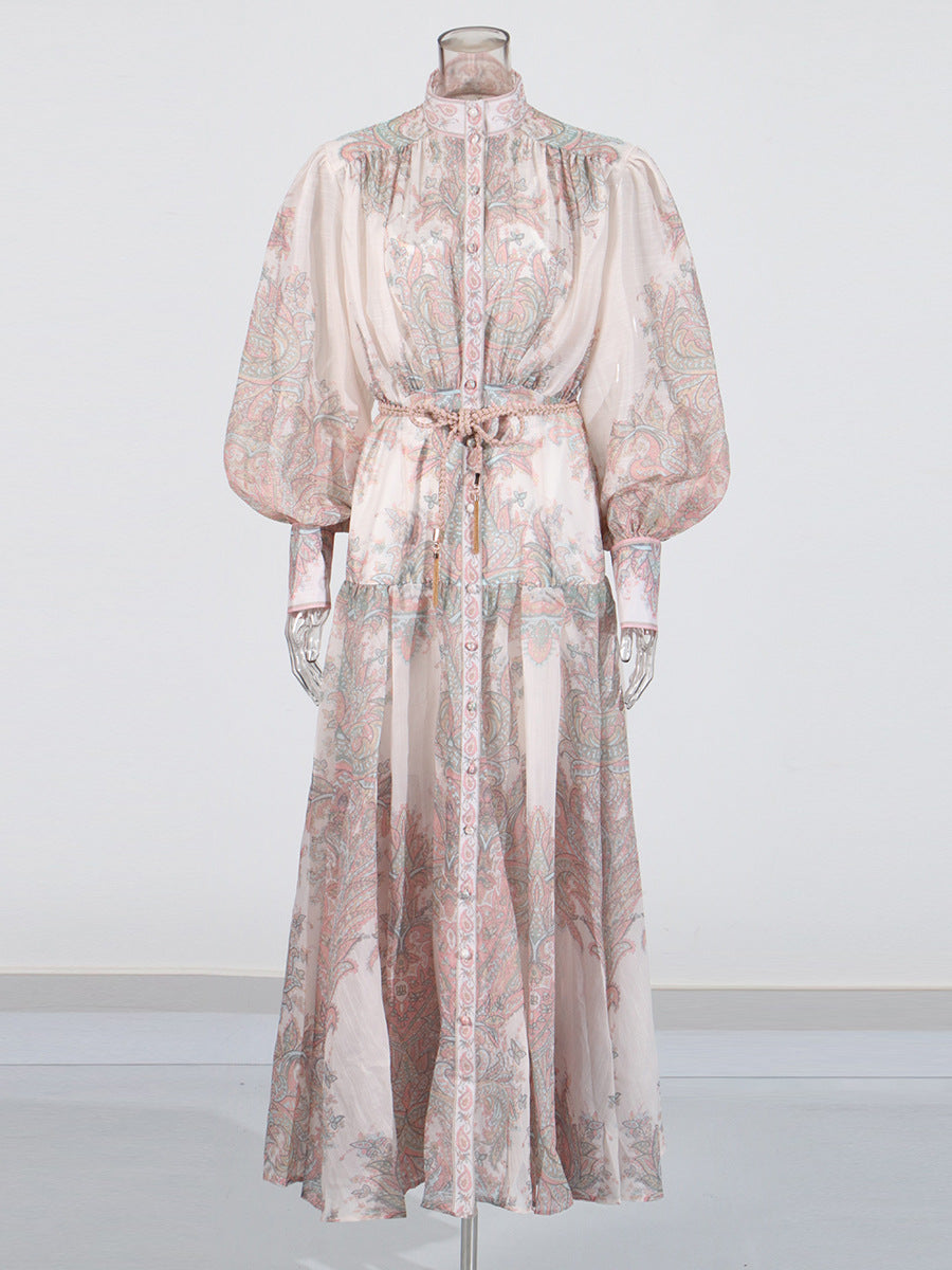 Plataz Temperament Court Style Dress 2025 New Print Single-Dlocked Long-Sleeved Summer Dress