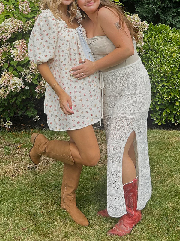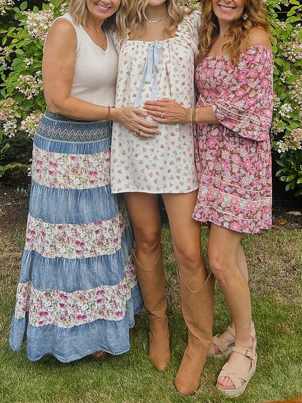 Plataz White Floral Bow Puff Sleeve Cute Baby Shower Maternity Mini Dress Maternity