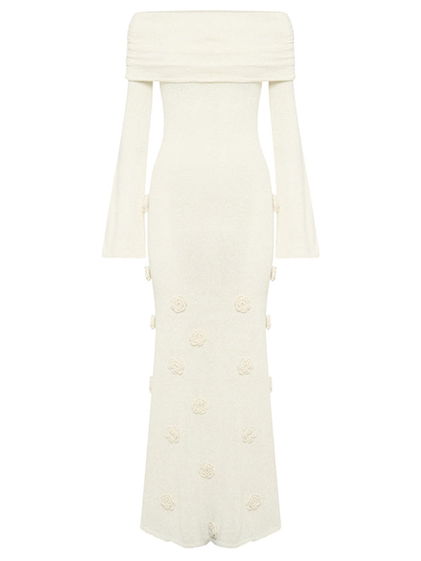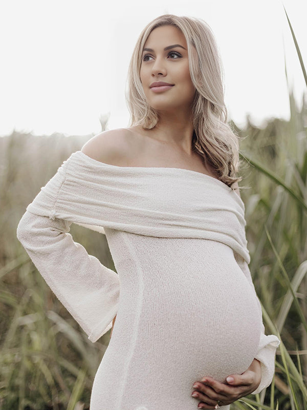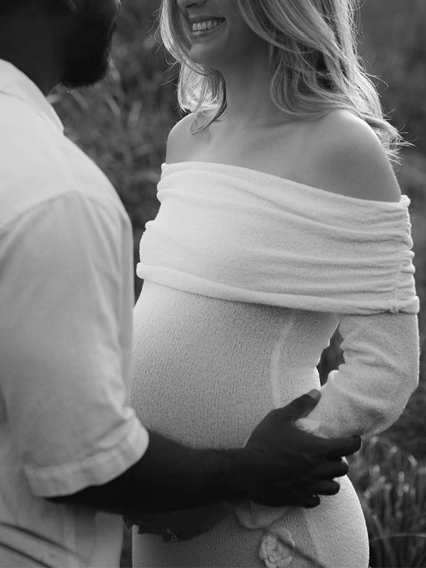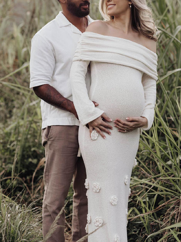 Plataz White Off Shoulder 3D Flowers Backless Bodycon Mermaid Cocktail Party Gowns Bandage Photoshoot Maternity Maxi Dress Maternity