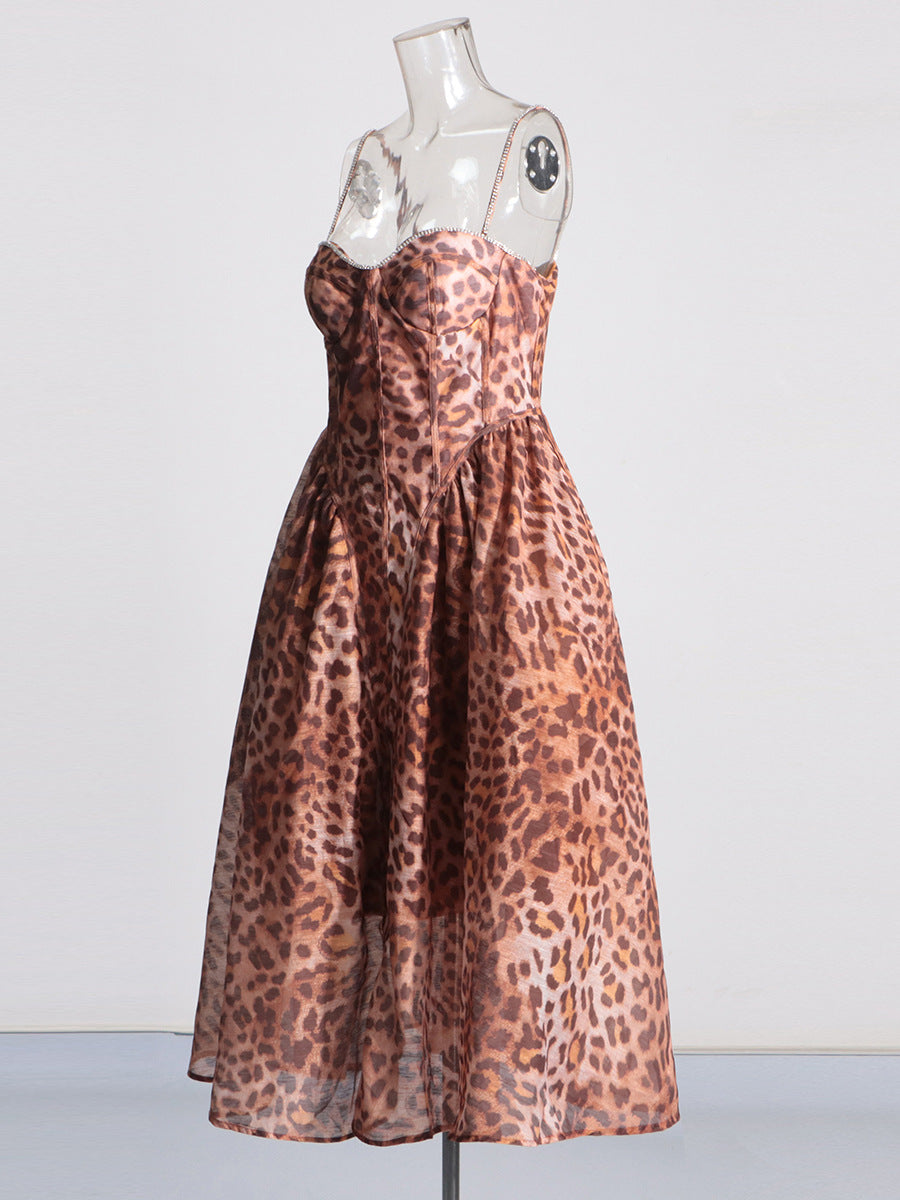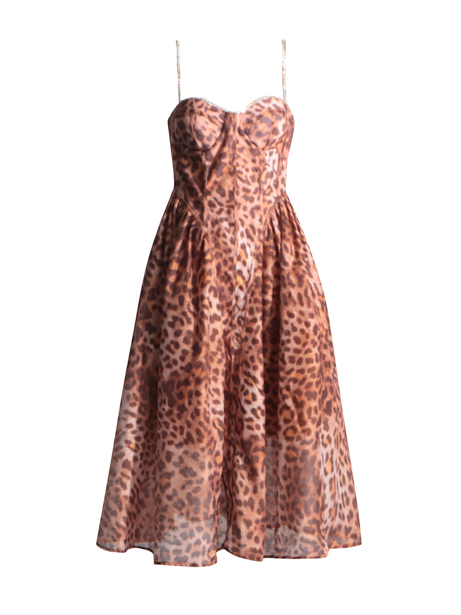 Plataz Wind Sling Skirt 2025 Summer New Sleeveless Chest Leopard Print Waist Dress Dress Dress Dress Woman