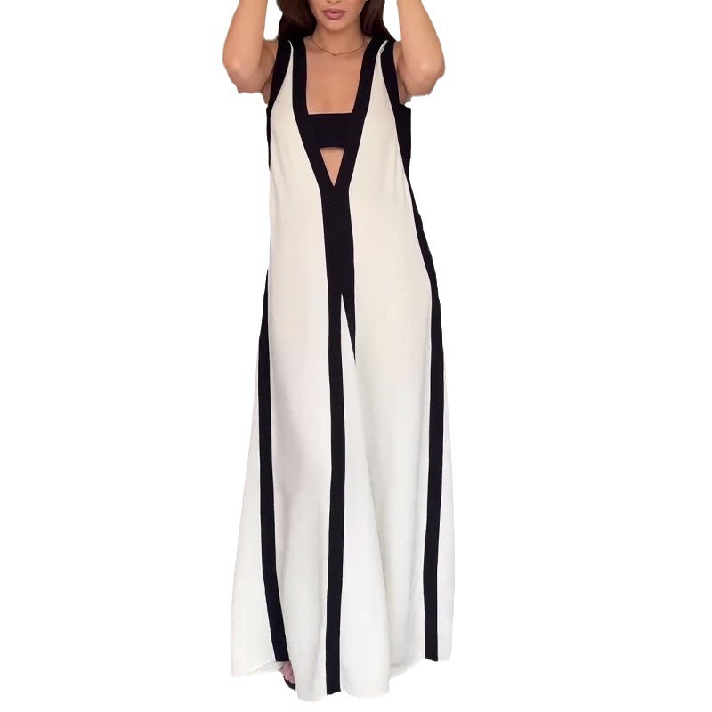 Plataz Women's Summer Sexy V-Neck Wide Shoulder Collsion Casual Dress